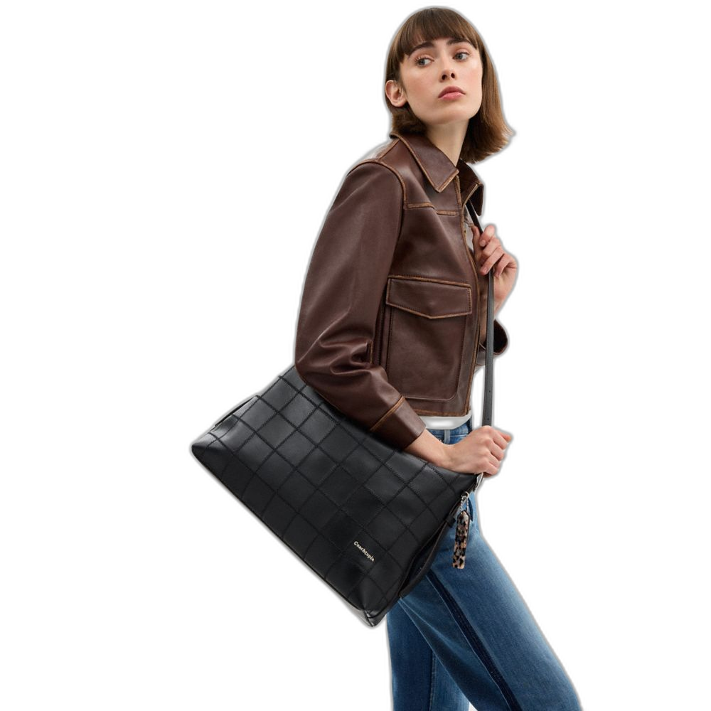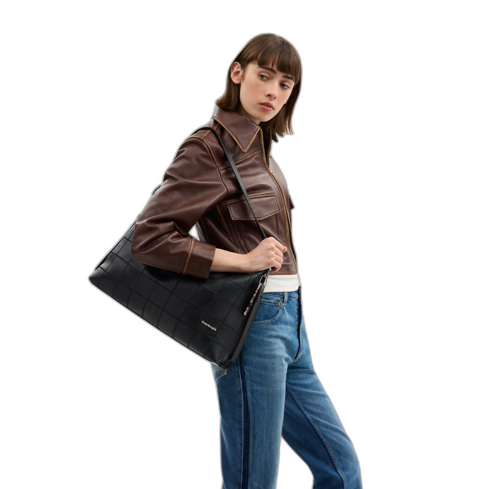 Coach Women's Alter/Ego Large Shoulder Bag In Checkerboard Upcrafted Leather Black