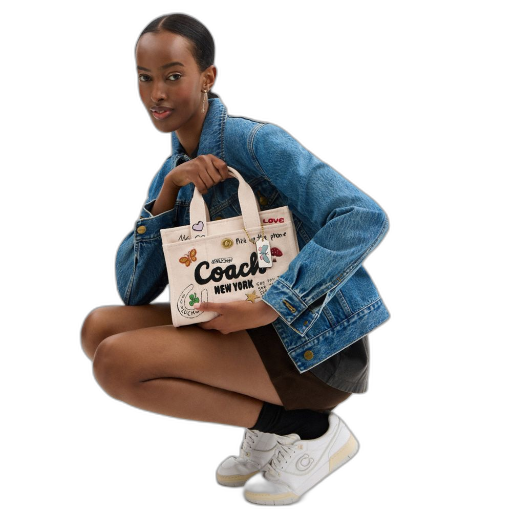 Carry as much (or as little) as you like with our lightweight Cargo tote. Detailed with our cursive Coach script embroidery and iconic turnlock closure, this compact 26 has an open interior with room for an iPad, two outside pockets for easy organization and a removable recycled polyester webbing strap for shoulder or crossbody wear. Featuring our Coach Sketch print, a playful doodle motif of whimsical drawings and phrases inspired by artistic notebook scribbling, this versatile canvas style is crafted with cotton* sourced from farms that use regenerative agricultural practices—those that help to maintain and rejuvenate land, increase biological diversity and soil health, and could lead to increased carbon absorption. It’s inspired by our commitment to reducing our impact on the planet. Now no matter where you go with it, you’ll always be toting around a little extra love for the planet.