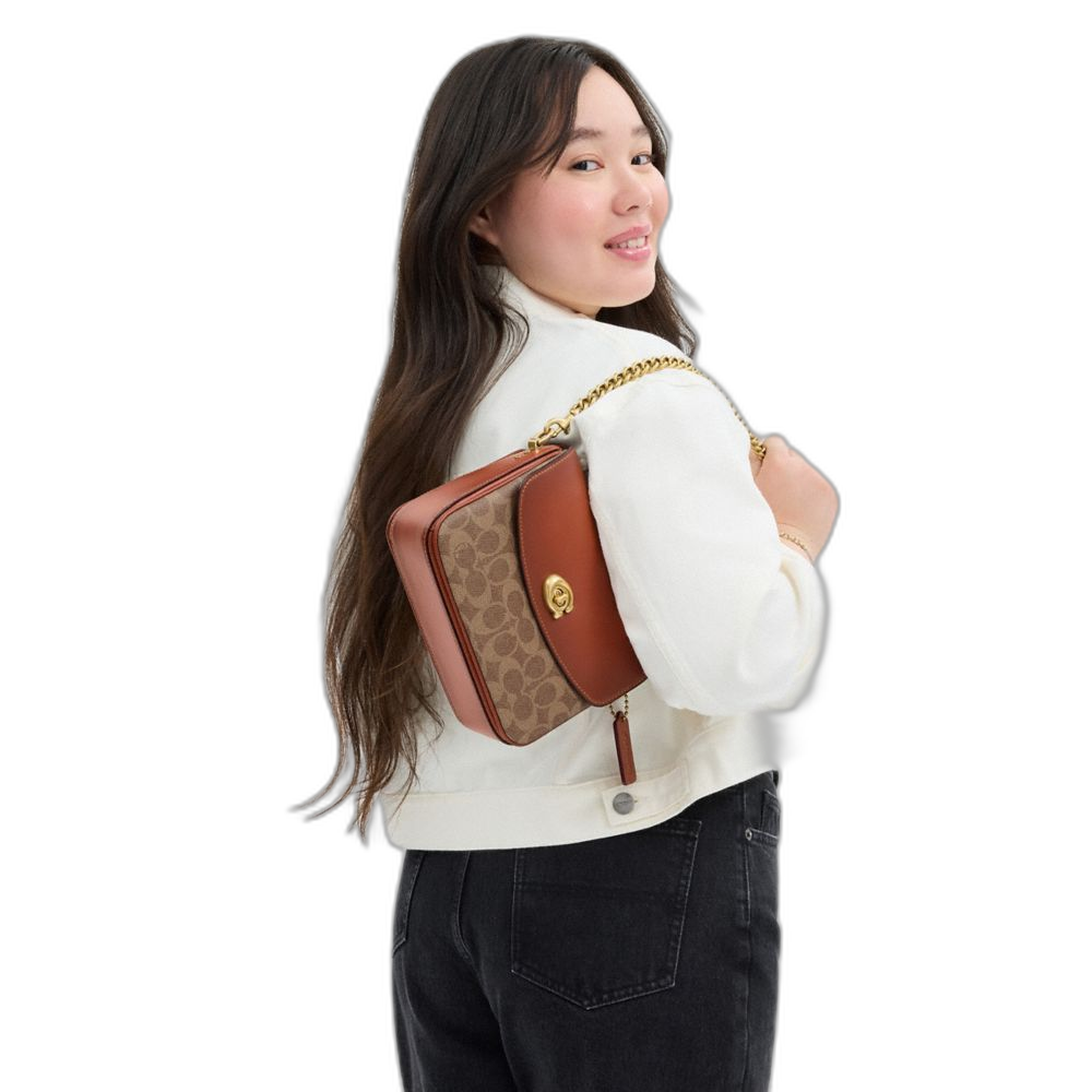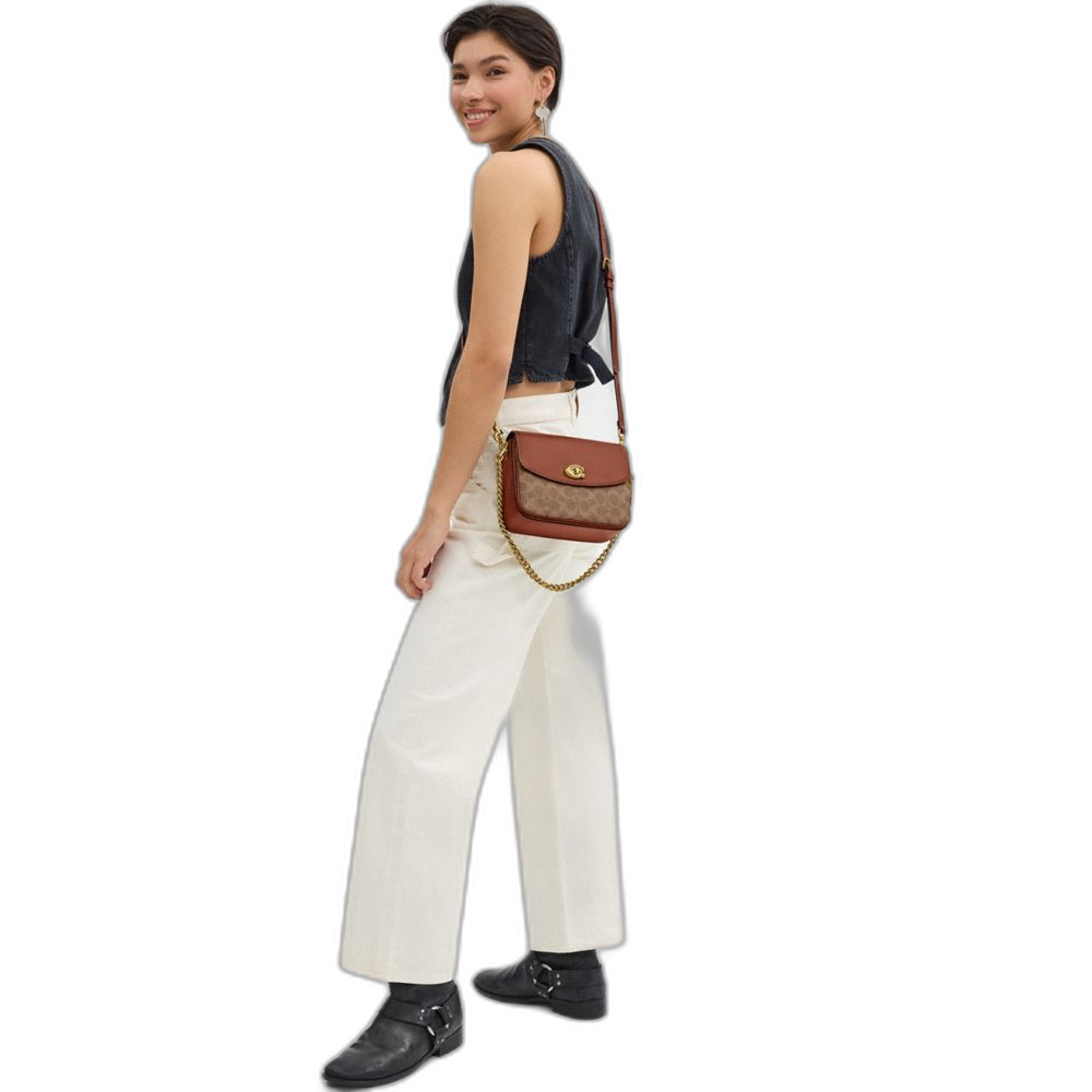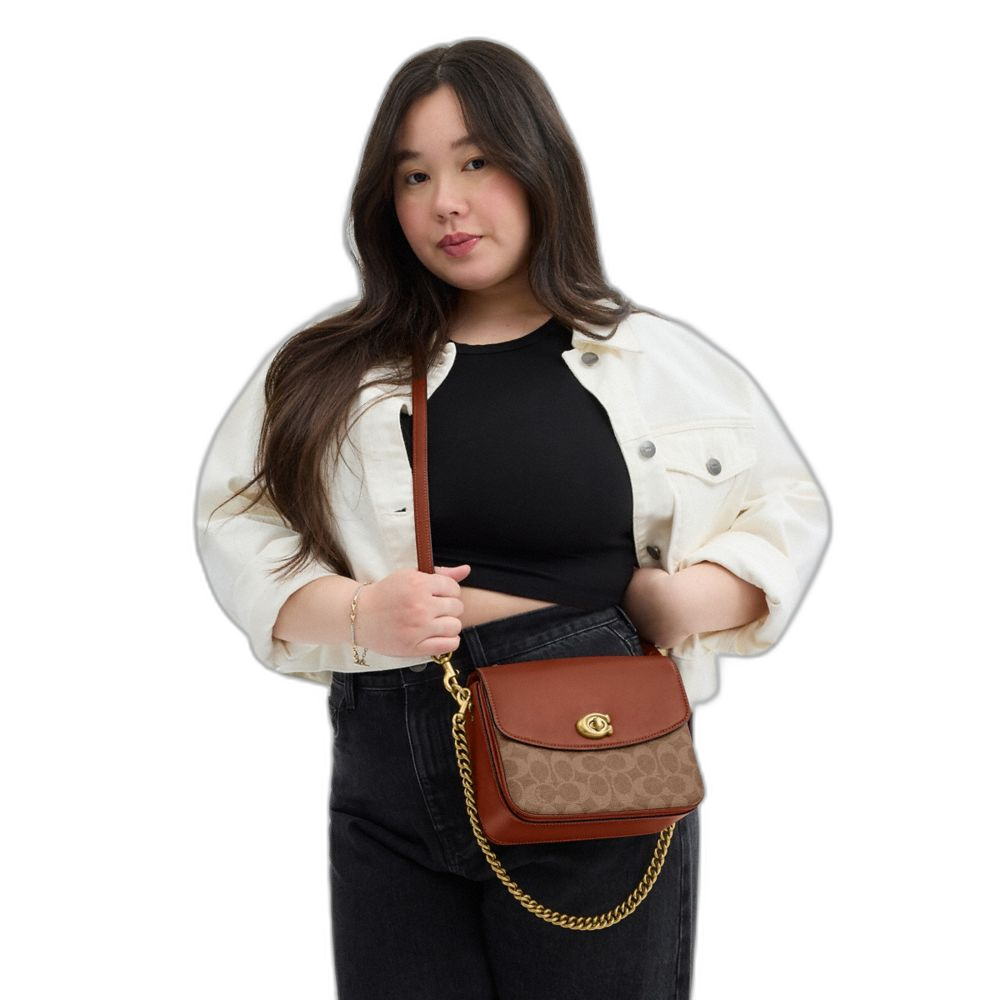Coach Women's Cassie Crossbody Bag 19 In Signature Canvas Brass/Tan Caramel