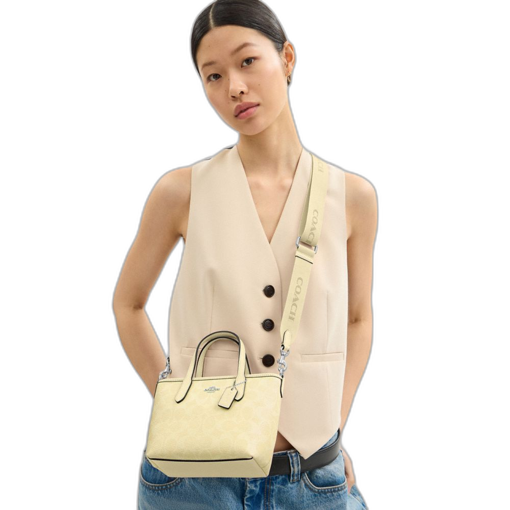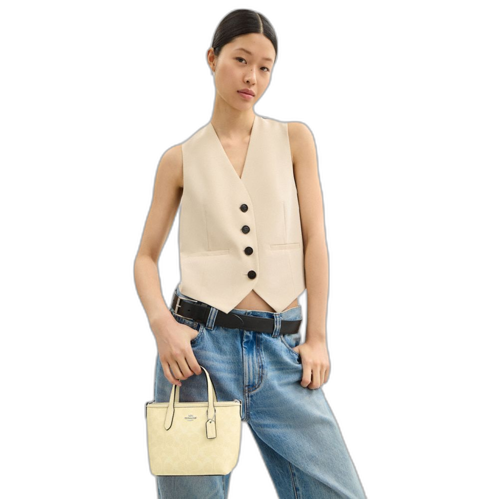 Coach Women's City Mini Tote Bag In Signature Canvas Silver/Hay