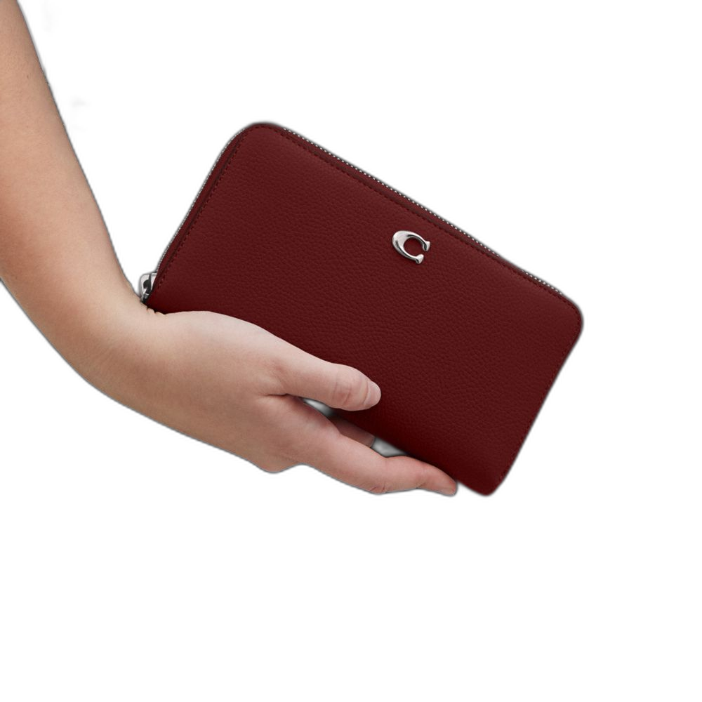 Coach Women's Essential Accordion Zip Wallet Silver/Dark Ruby