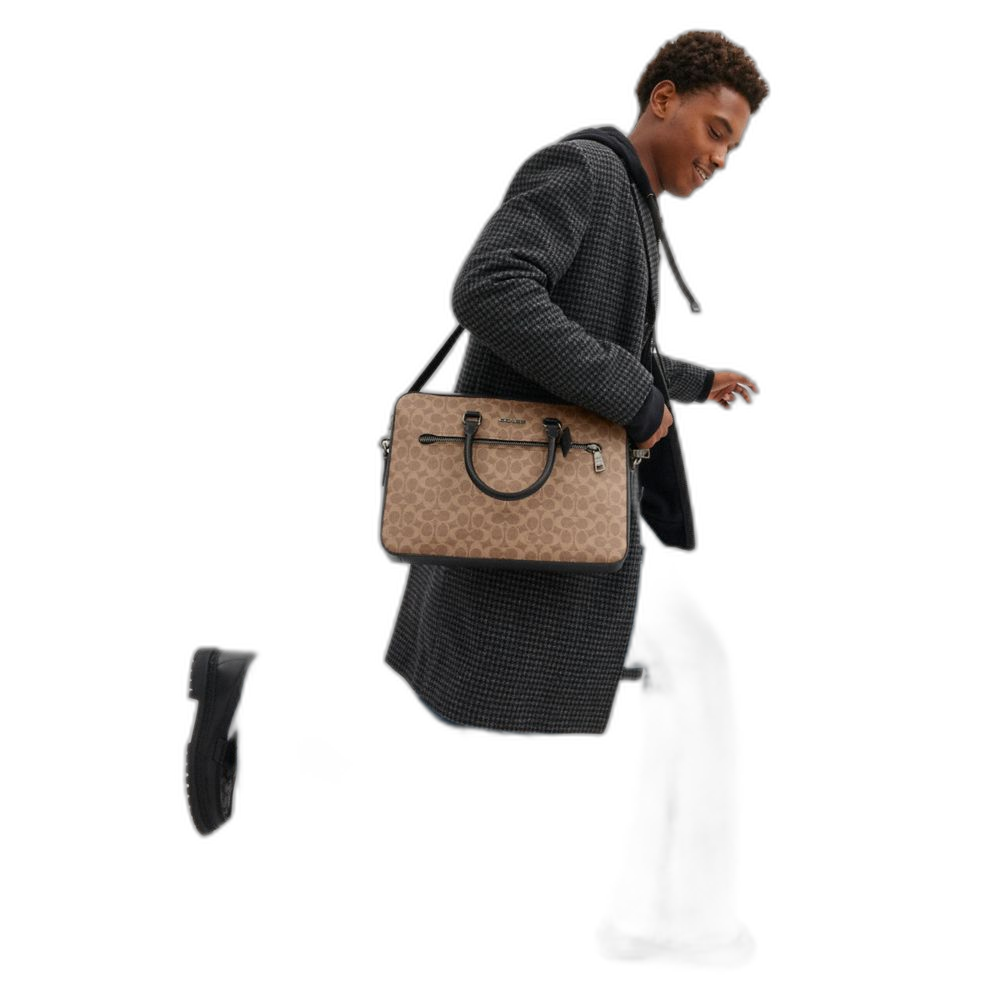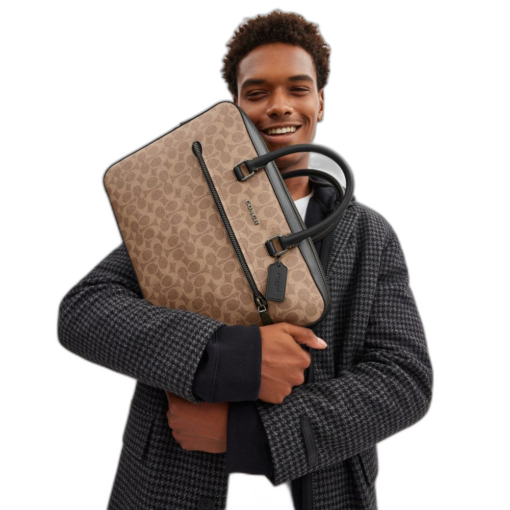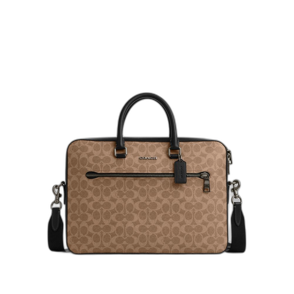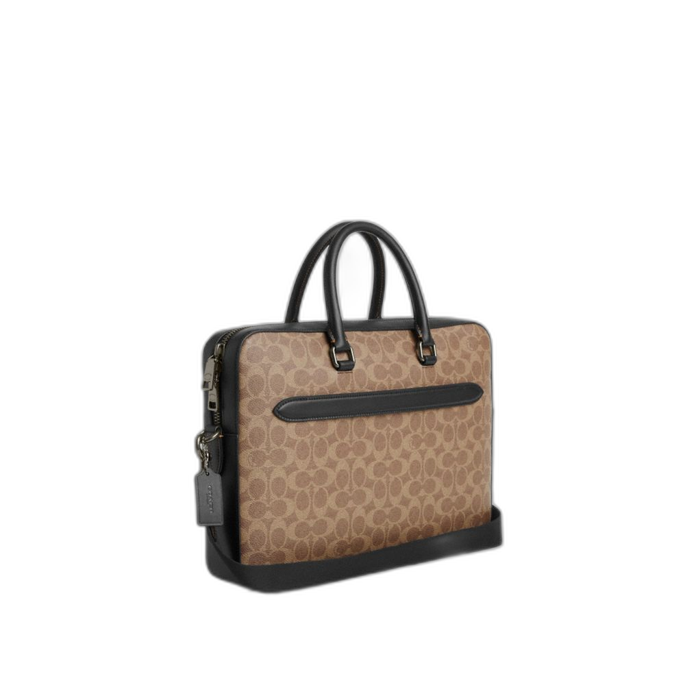 Coach Ethan Slim Brief In Signature Canvas Qb/Tan/Black