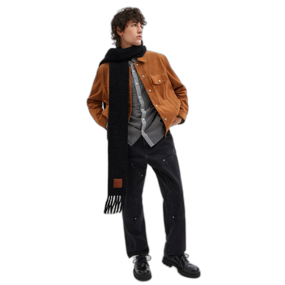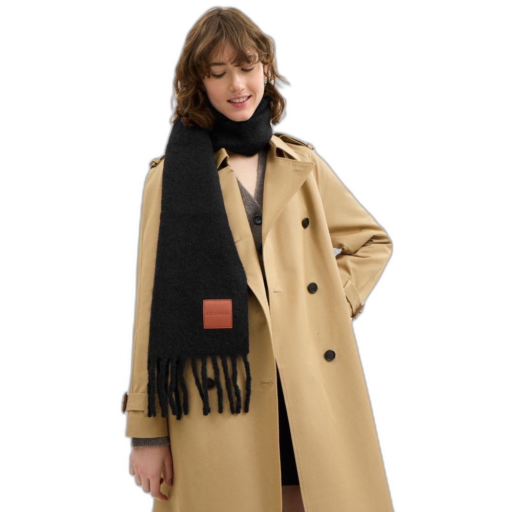 Coach Women's Oversized Muffler With Leather Patch Black