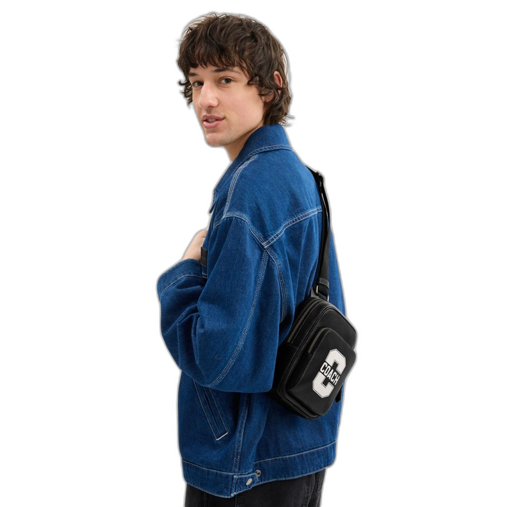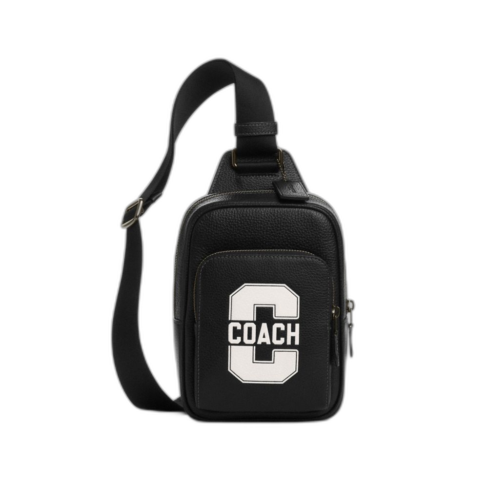 Coach Women's Racer Sling Pack With Varsity Motif Gunmetal/Black/Chalk