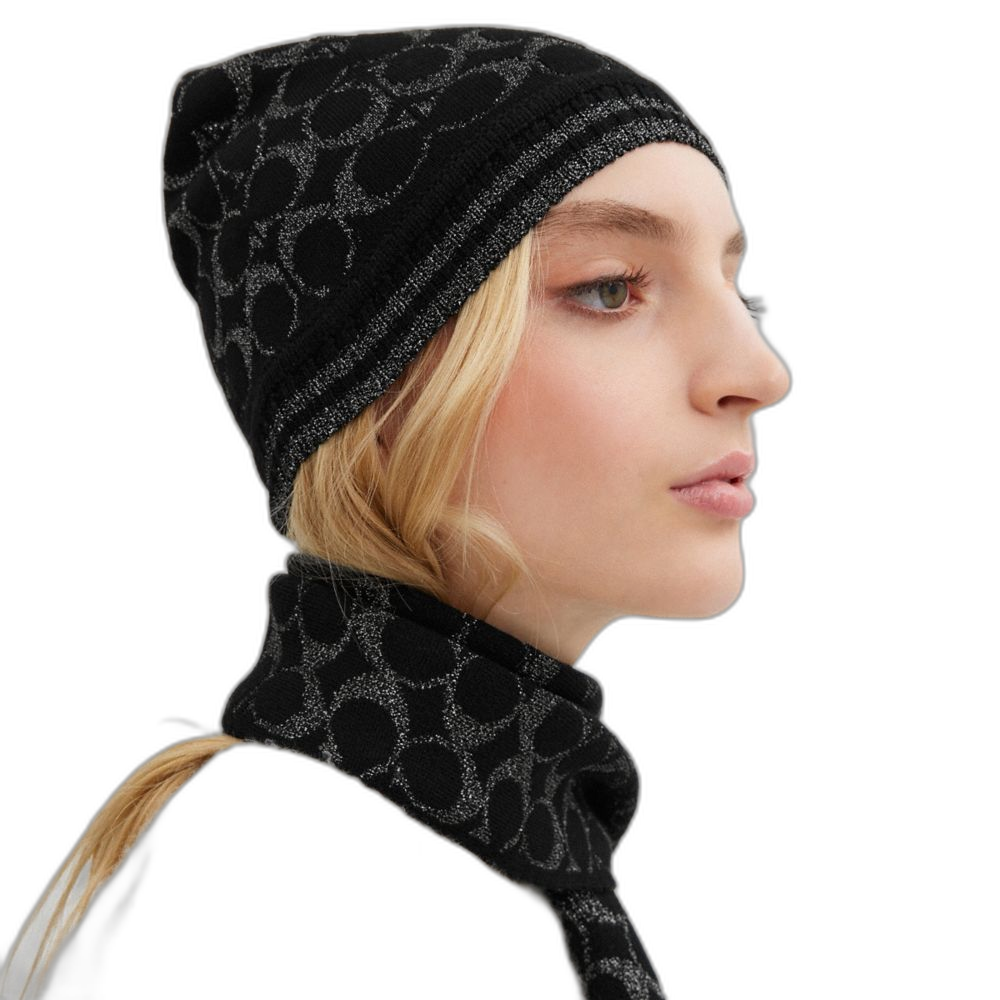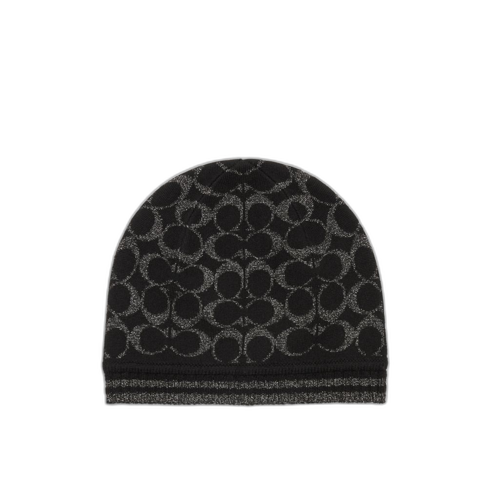 Coach Women's Signature Metallic Knit Beanie Black