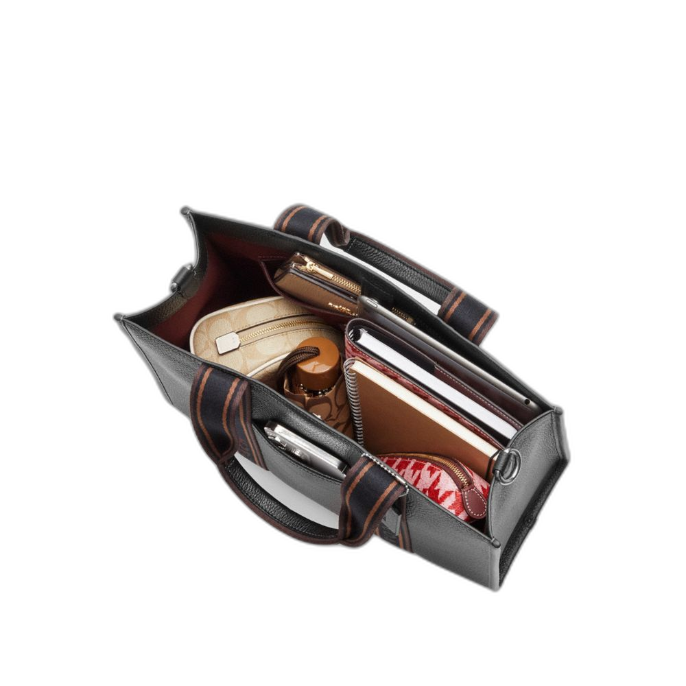 Signature jacquard and refined pebble leather Inside zip and multifunction pockets Handles with 5" drop Outside open pocket Detachable strap... Read more