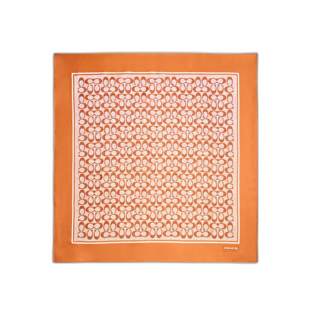 Coach Women's Textured Signature Print Silk Square Scarf Burnished Amber