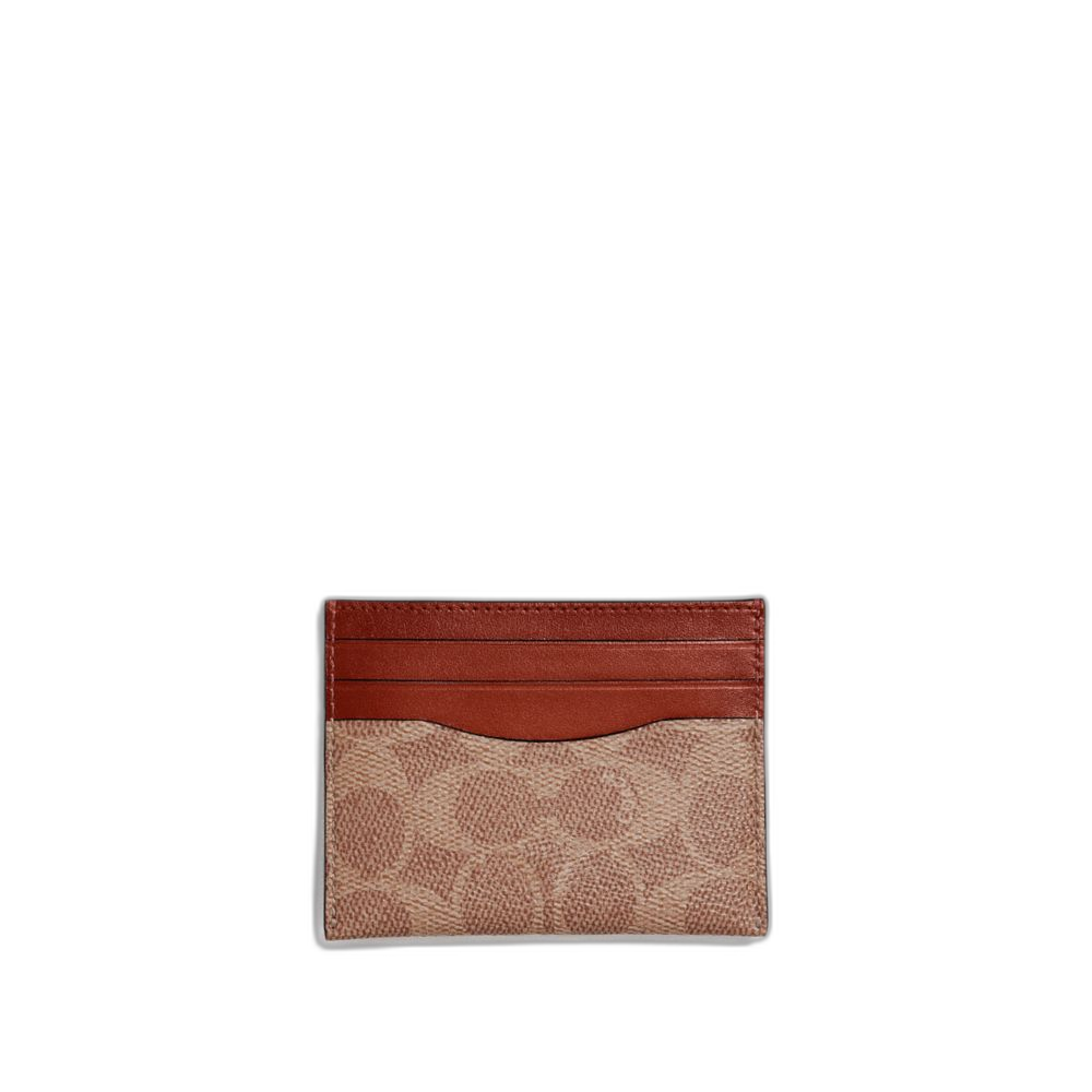 Coach Women's Card Case In Signature Canvas Tan/Rust