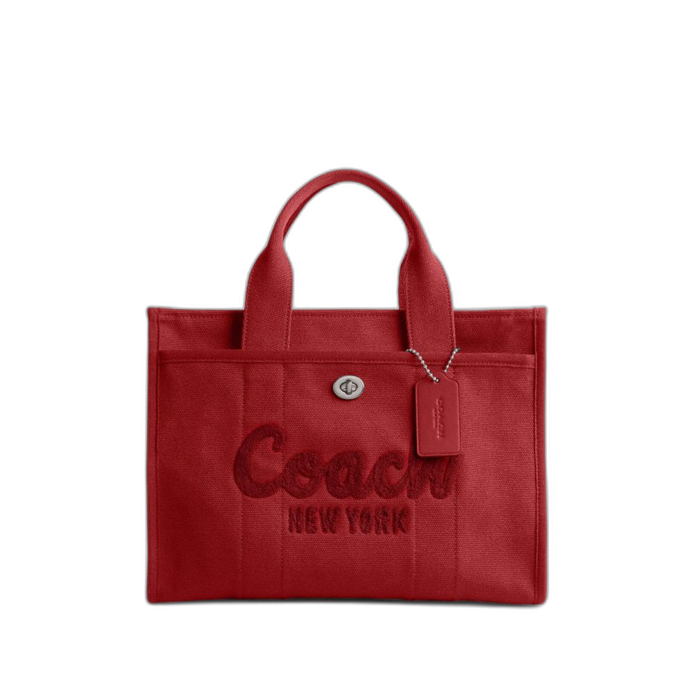 Carry as much (or as little) as you like with our lightweight Cargo tote. Detailed with our cursive Coach script embroidery and iconic turnlock closure, this spacious carryall has an open interior with room for a 13" laptop, two outside pockets for easy organization and a removable webbing strap for shoulder or crossbody wear. Crafted to last, this versatile style is made with cotton sourced from farms that use regenerative agricultural practices* and inspired by our commitment to reducing our impact on the planet. Now no matter where you go with it, you’ll always be toting around a little extra love for the planet.