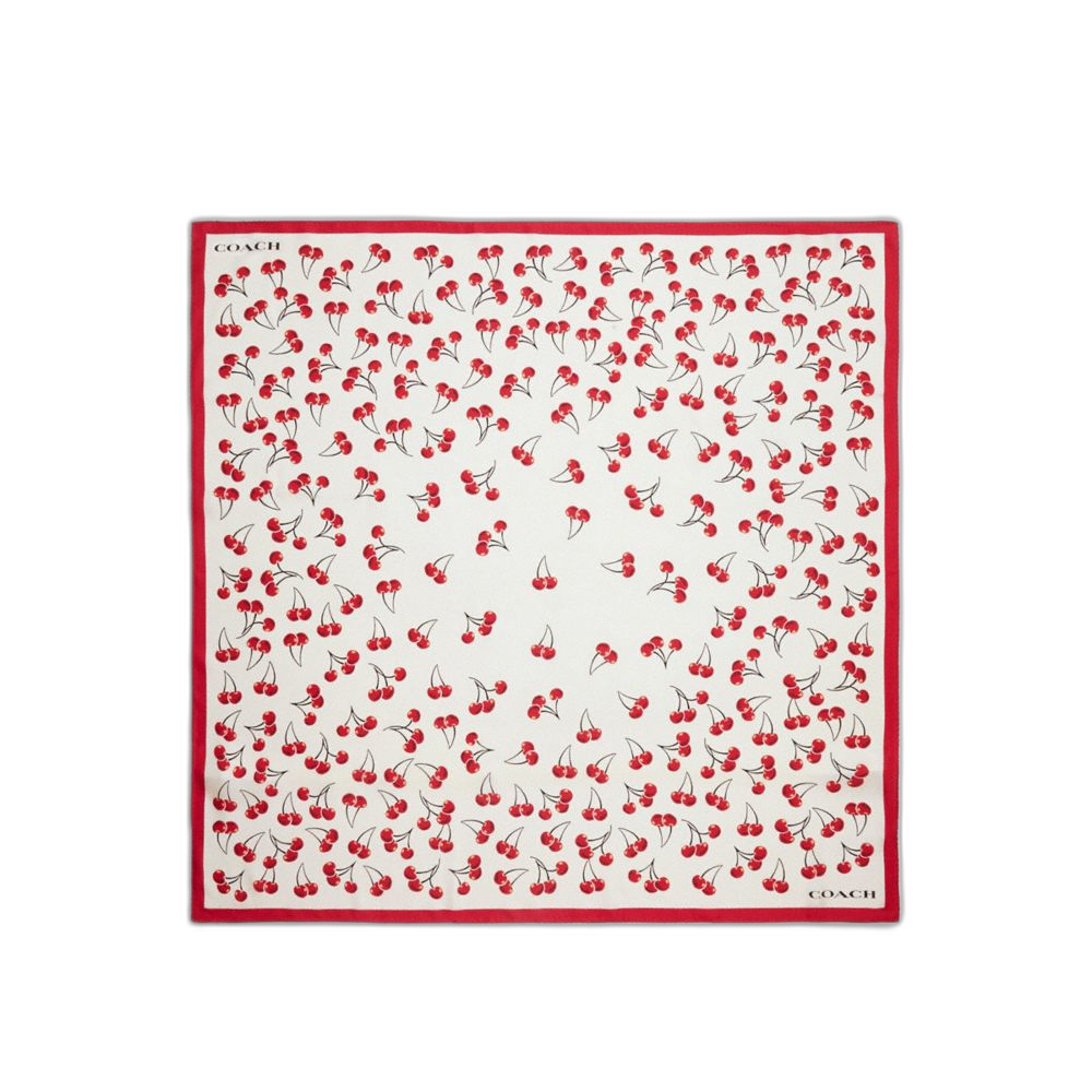 Coach Women's Cherry Swirl Print Silk Square Scarf Chalk/Red
