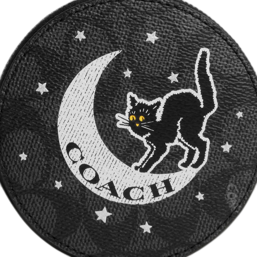 Coach Women's Coin Case In Signature Canvas With Halloween Graphic Silver/Charcoal/Black Multi