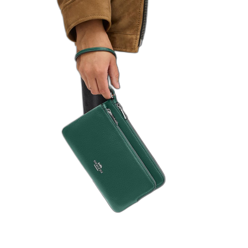 Coach Women's Double Zip Wallet Silver/Emerald Green