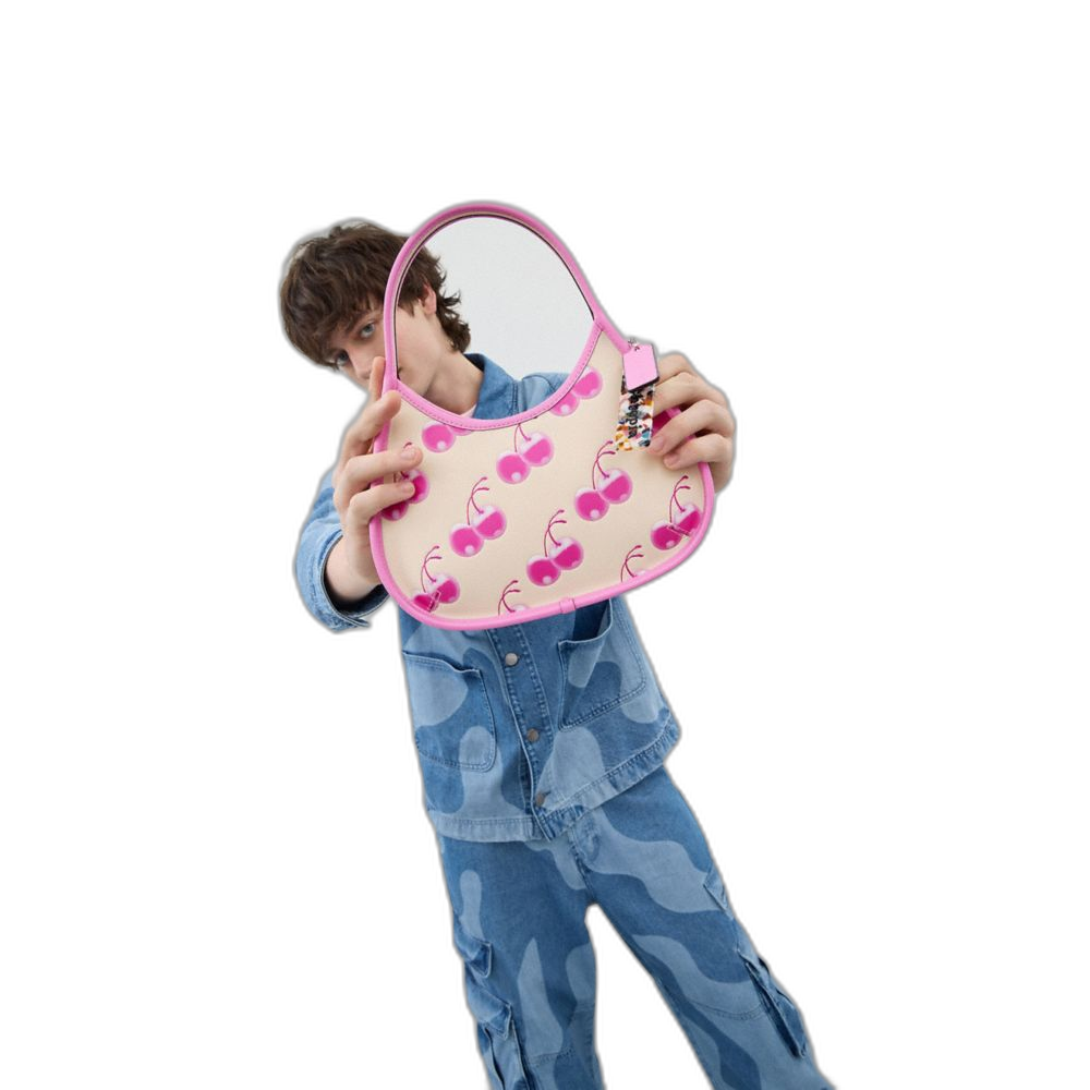 Coach Women's Ergo Bag In Coachtopia Leather With Cherry Print Pink/Cloud Multi
