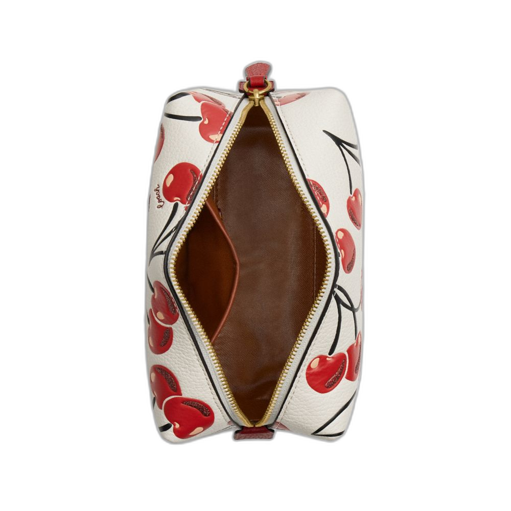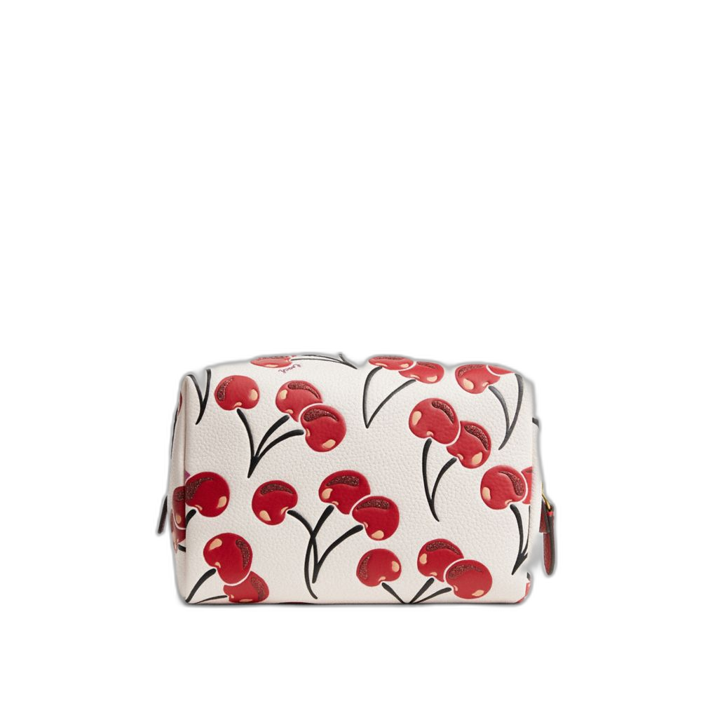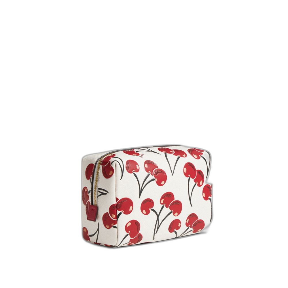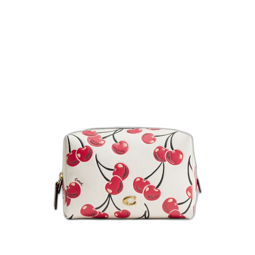 Coach Women's Essential Cosmetic Pouch With Cherry Print Brass/Chalk Multi