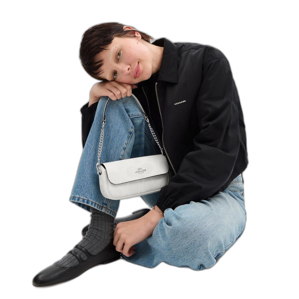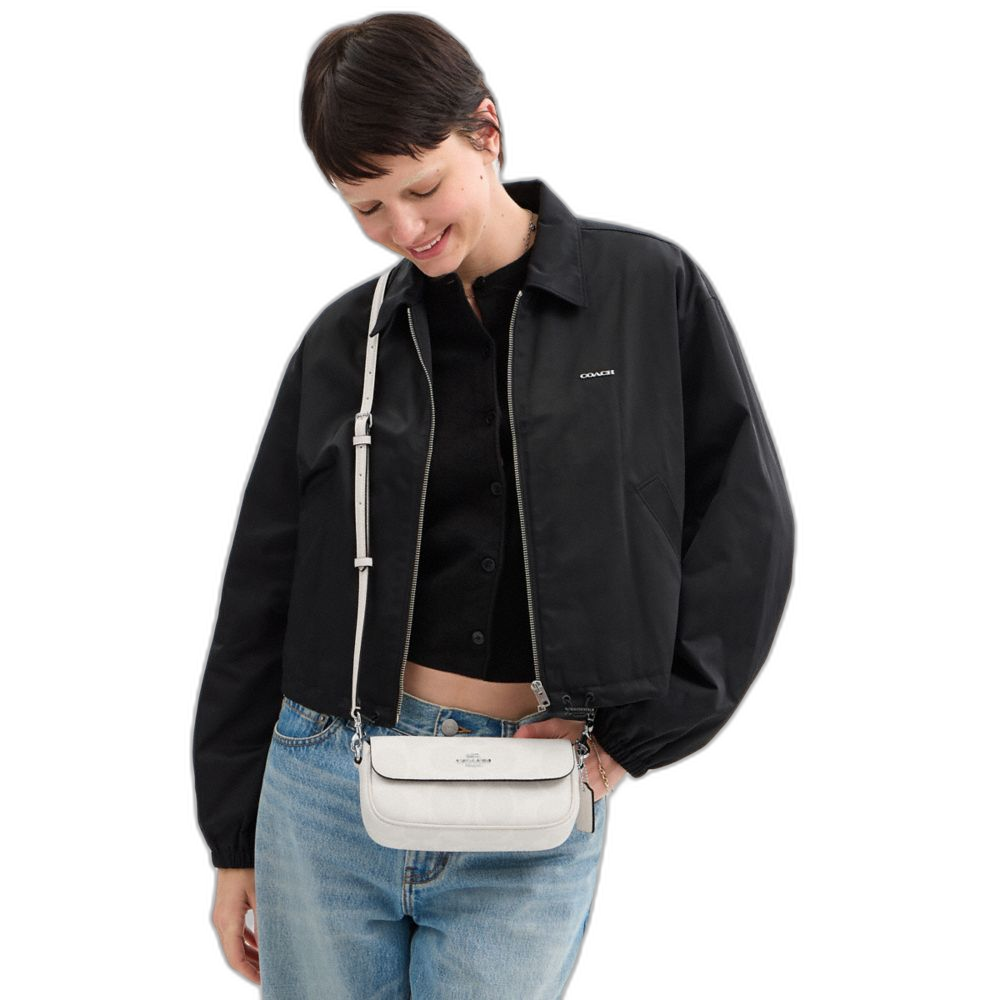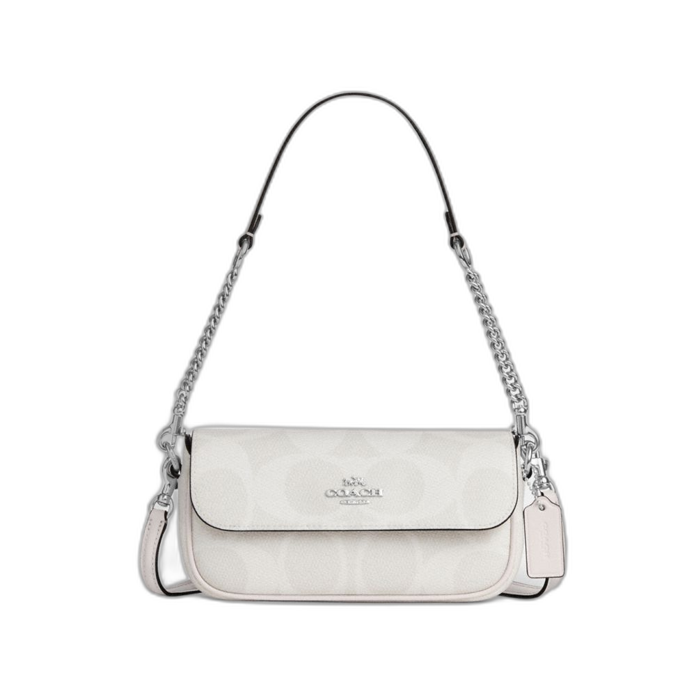 Coach Women's Hailey Flap Bag In Signature Canvas Sv/White/Chalk