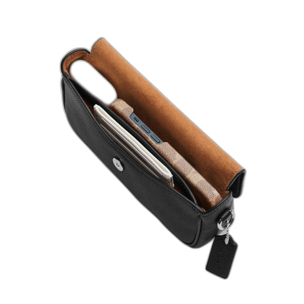 Signature coated canvas and smooth leather Inside open pocket Snap closure, fabric lining Detachable handle with 8 1/4" drop Outside... Read more