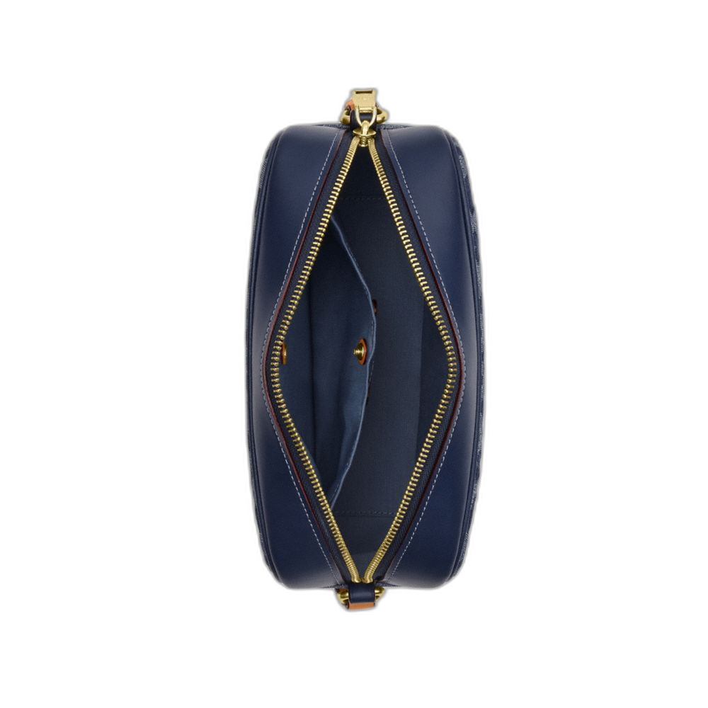 Signature denim and vachetta leather Inside snap pocket Zip closure, fabric lining Outside open pocket Adjustable strap with 22 3/4"... Read more