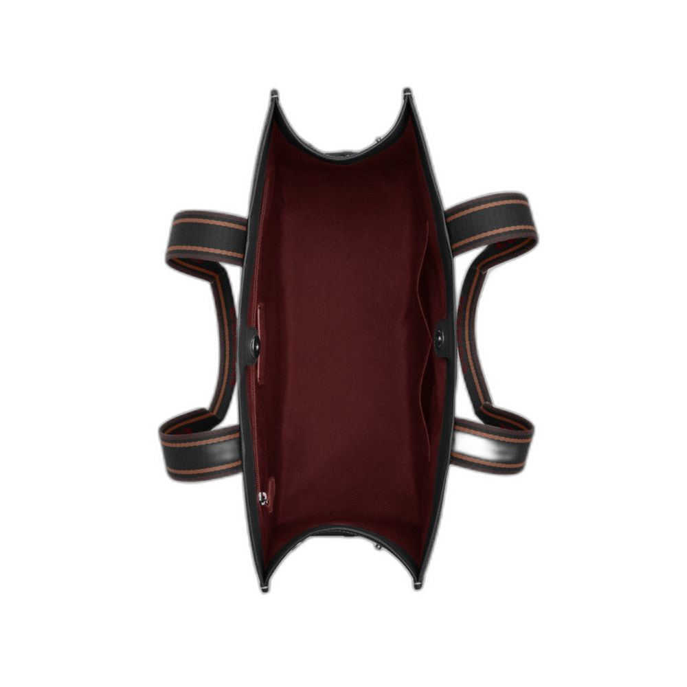 Refined pebble leather and webbing Inside zip and multifunction pockets Snap closure, fabric lining Handles with 10 1/2" drop Outside... Read more