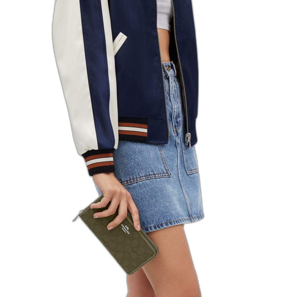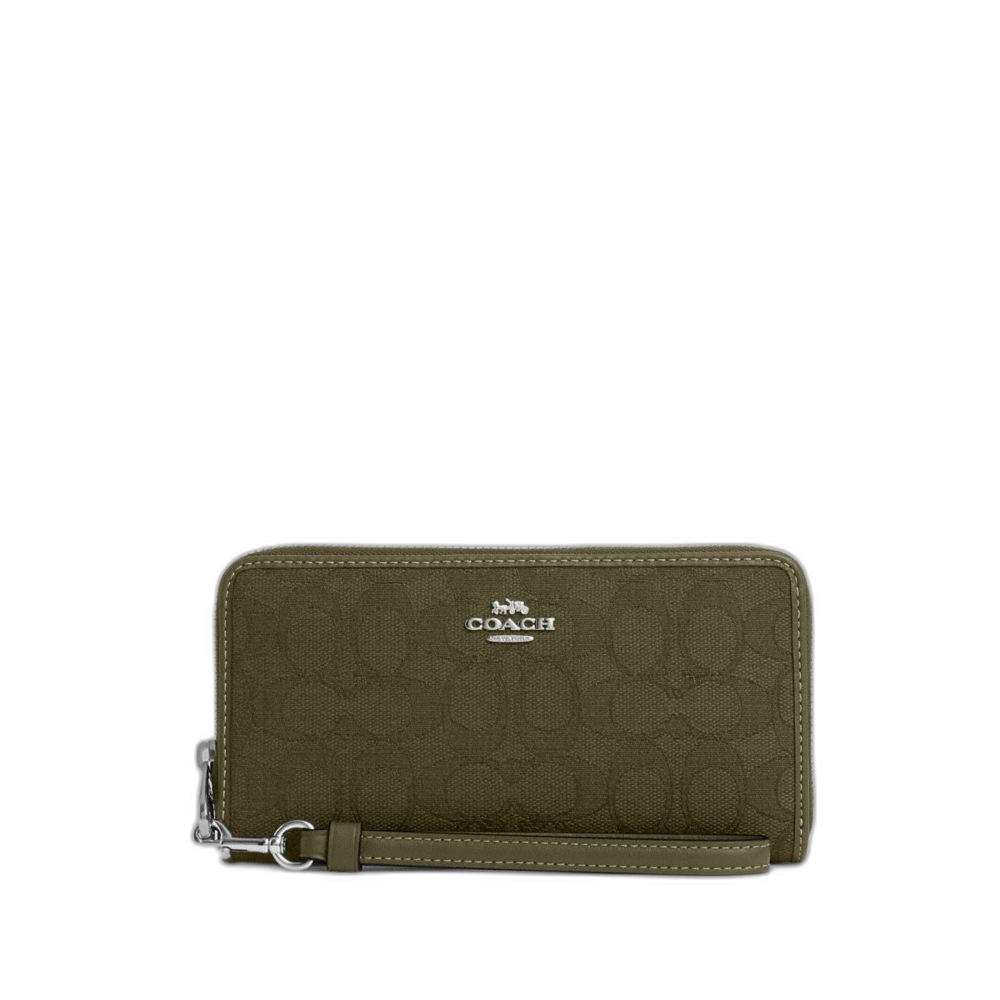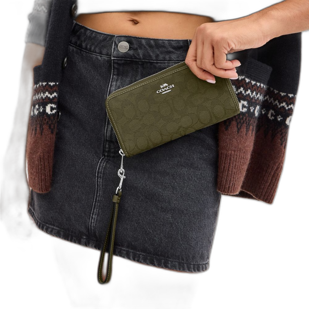 Coach Women's Long Zip Around Wallet In Signature Jacquard Silver/Olive Drab/Olive Drab