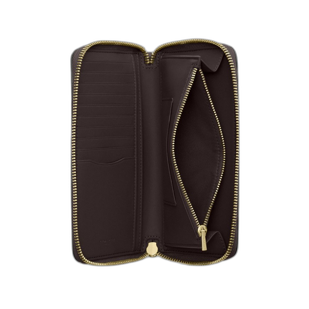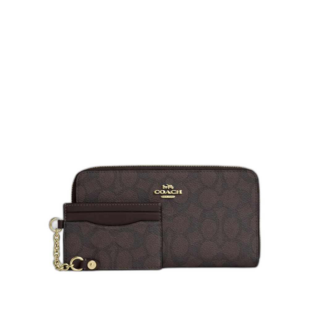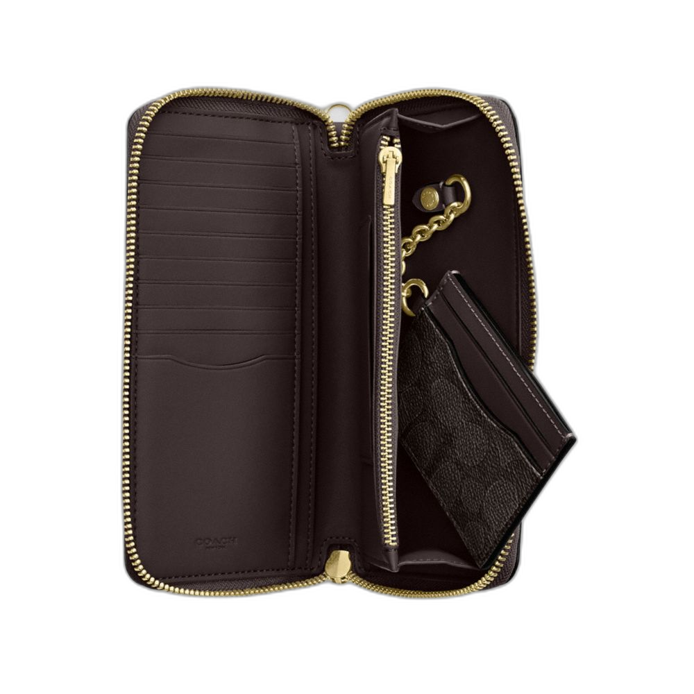 Coach Women's Long Zip Around Wallet With Detachable Card Case In Signature Canvas Gold/Walnut/Black