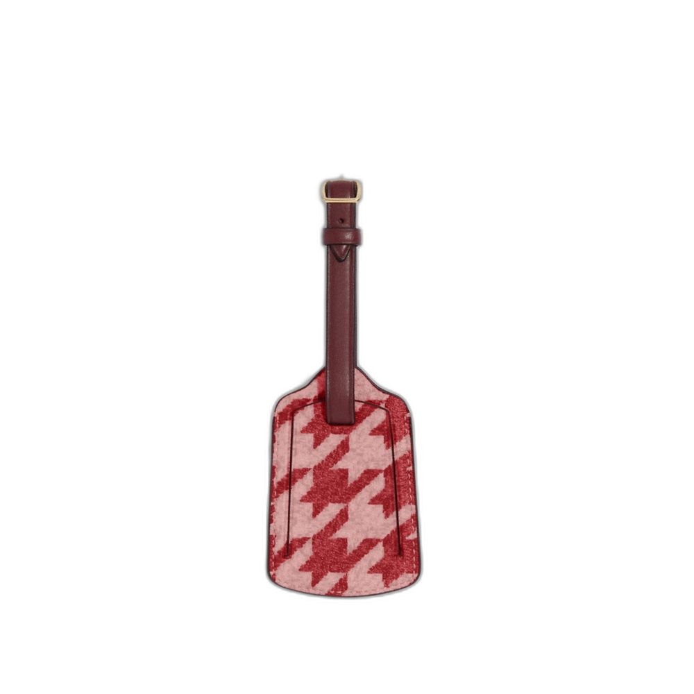 Coach Women's Luggage Tag With Houndstooth Print Gold/Pink/Red