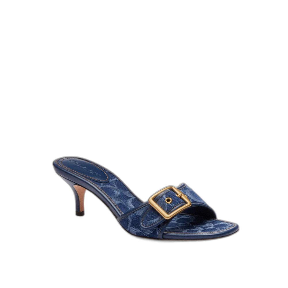 Signature denim and leather upper Man-made leather lining, Signature jacquard footbed Leather outsole Slip on 2 1/4" heelStyle No. CAR73 Read more