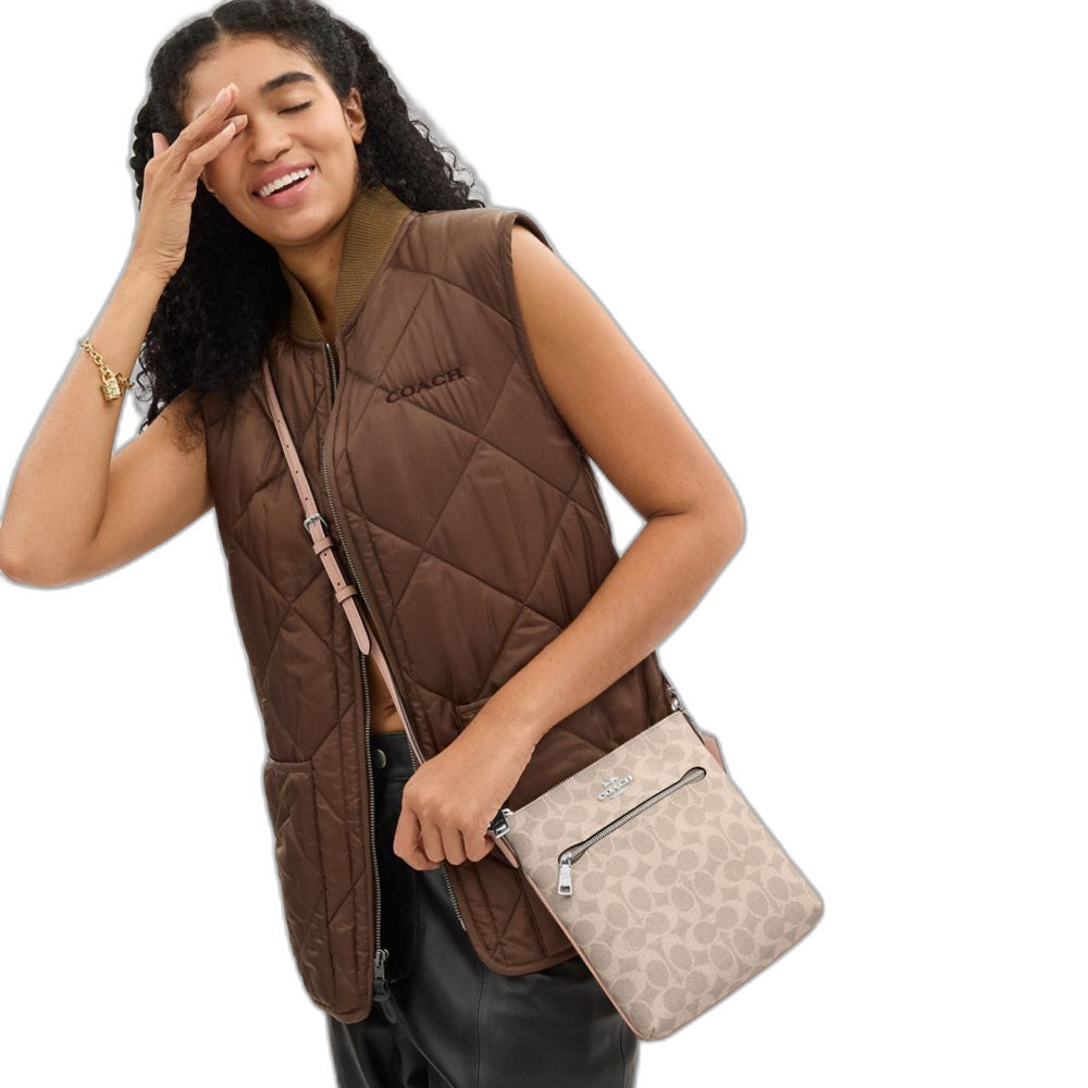 Coach Women's Mini Rowan File Bag In Signature Canvas Silver/Sand/Taupe