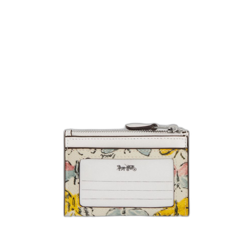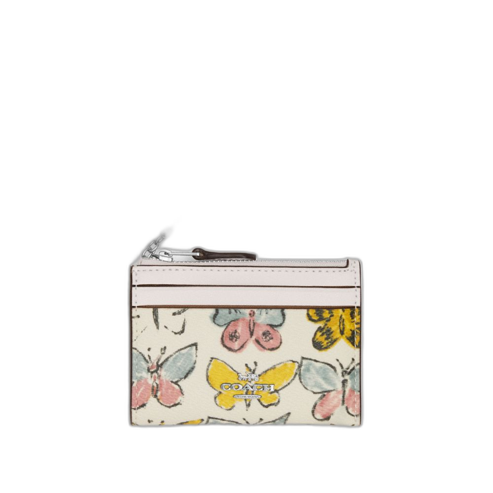 Coach Women's Mini Skinny Id Case With Butterfly Print Silver/Chalk Multi