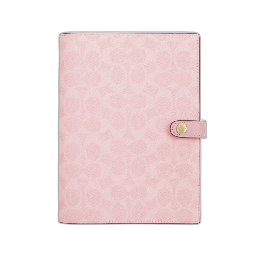 Coach Women's Notebook In Signature Canvas Gold/Powder Pink