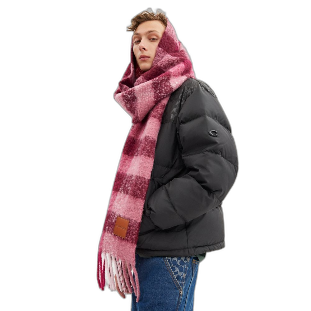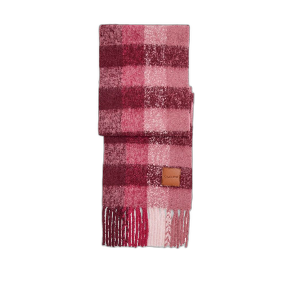 Coach Women's Oversized Plaid Muffler With Leather Patch Merlot