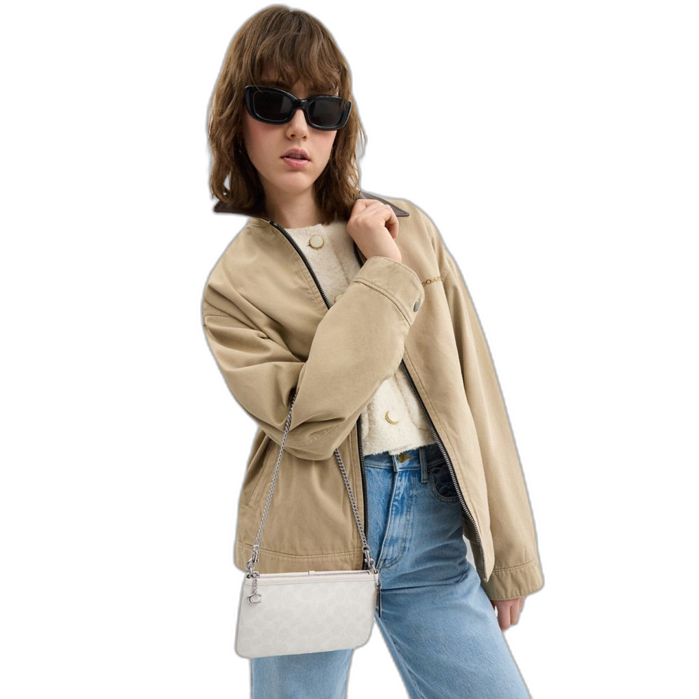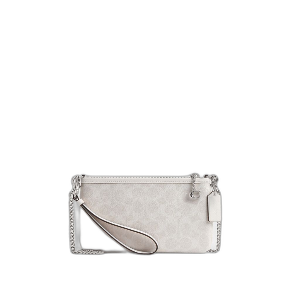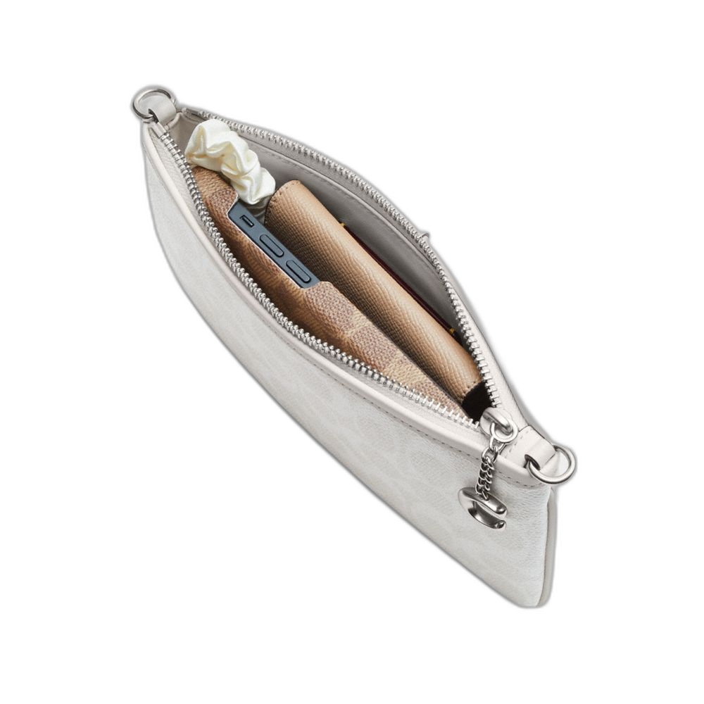 Coach Women's Pouch Bag In Signature Canvas Silver/White Chalk