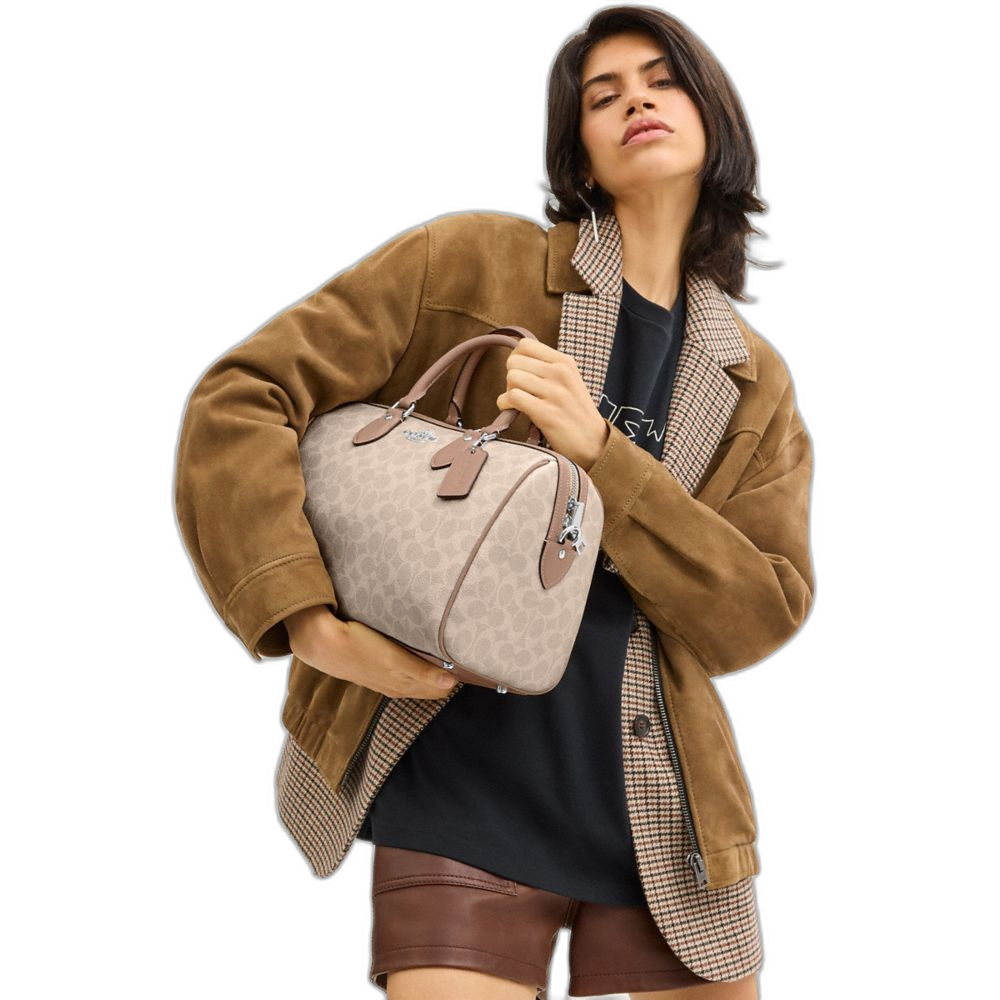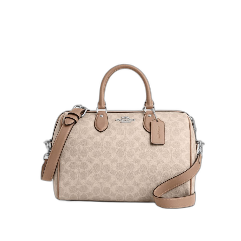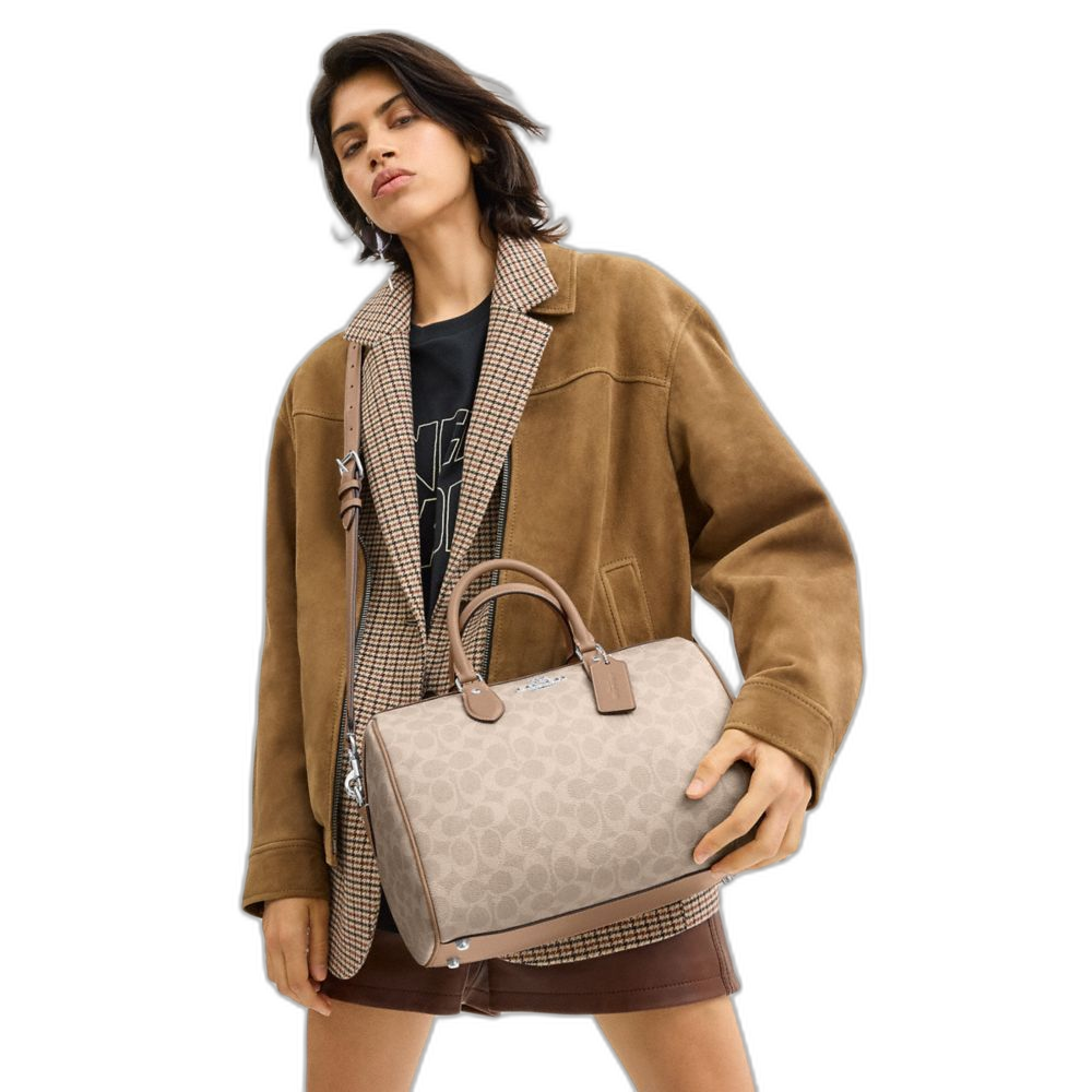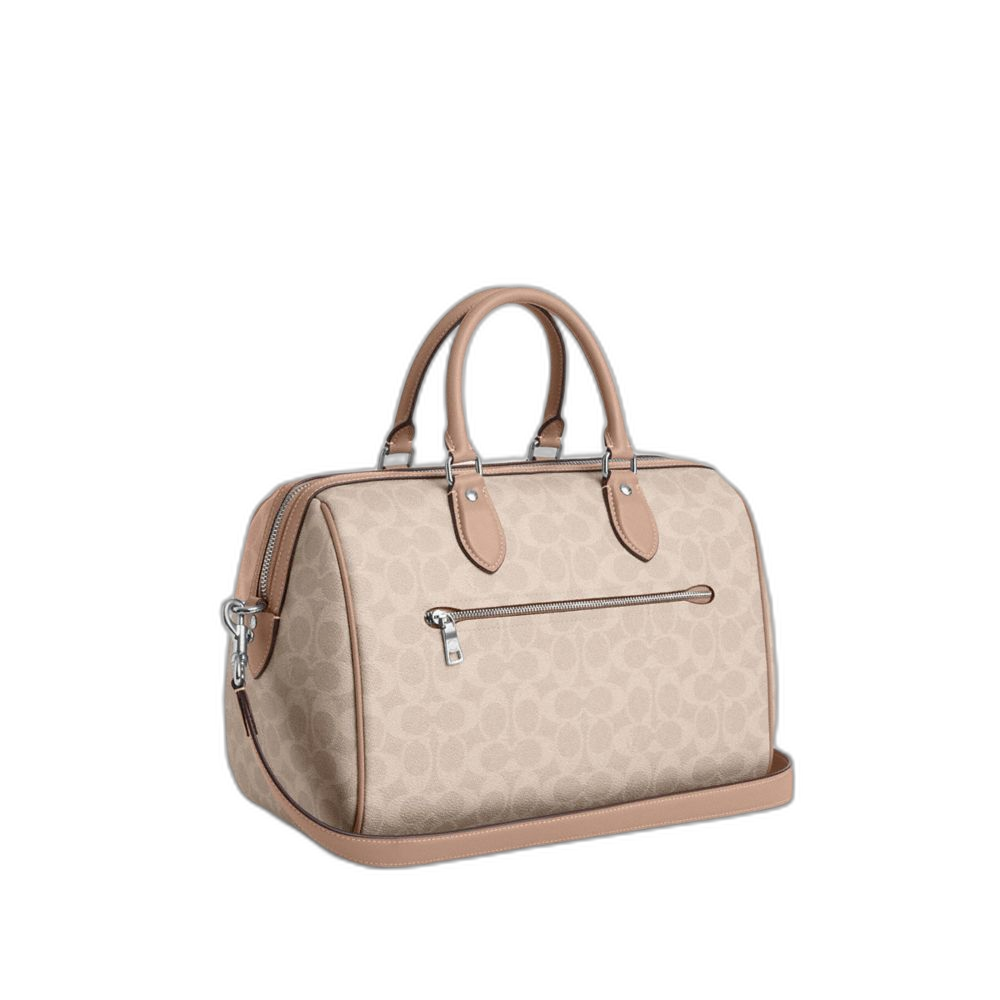 Coach Women's Rowan Large Satchel Bag In Signature Canvas Silver/Sand/Taupe