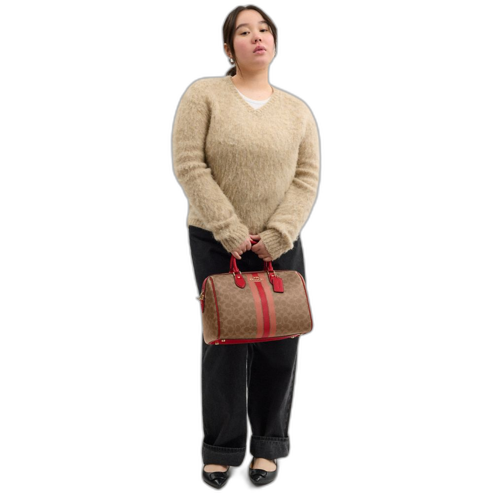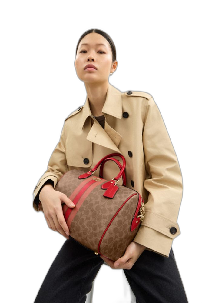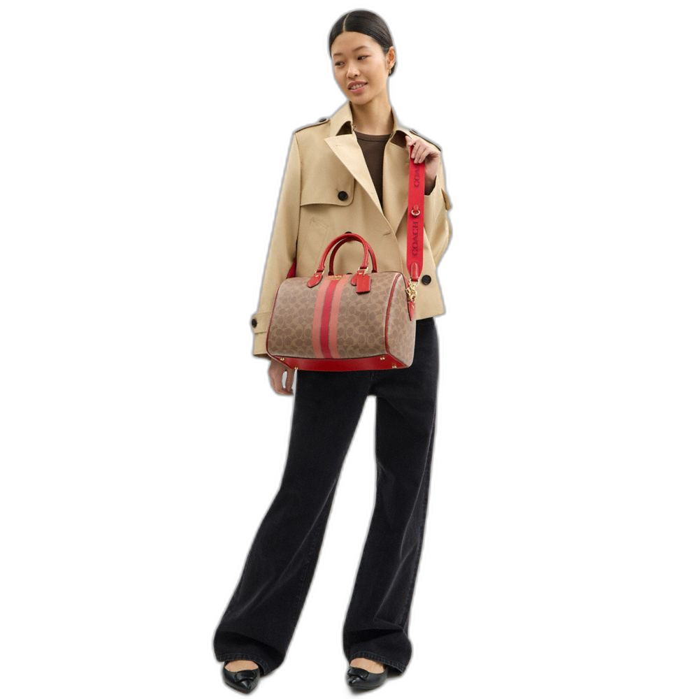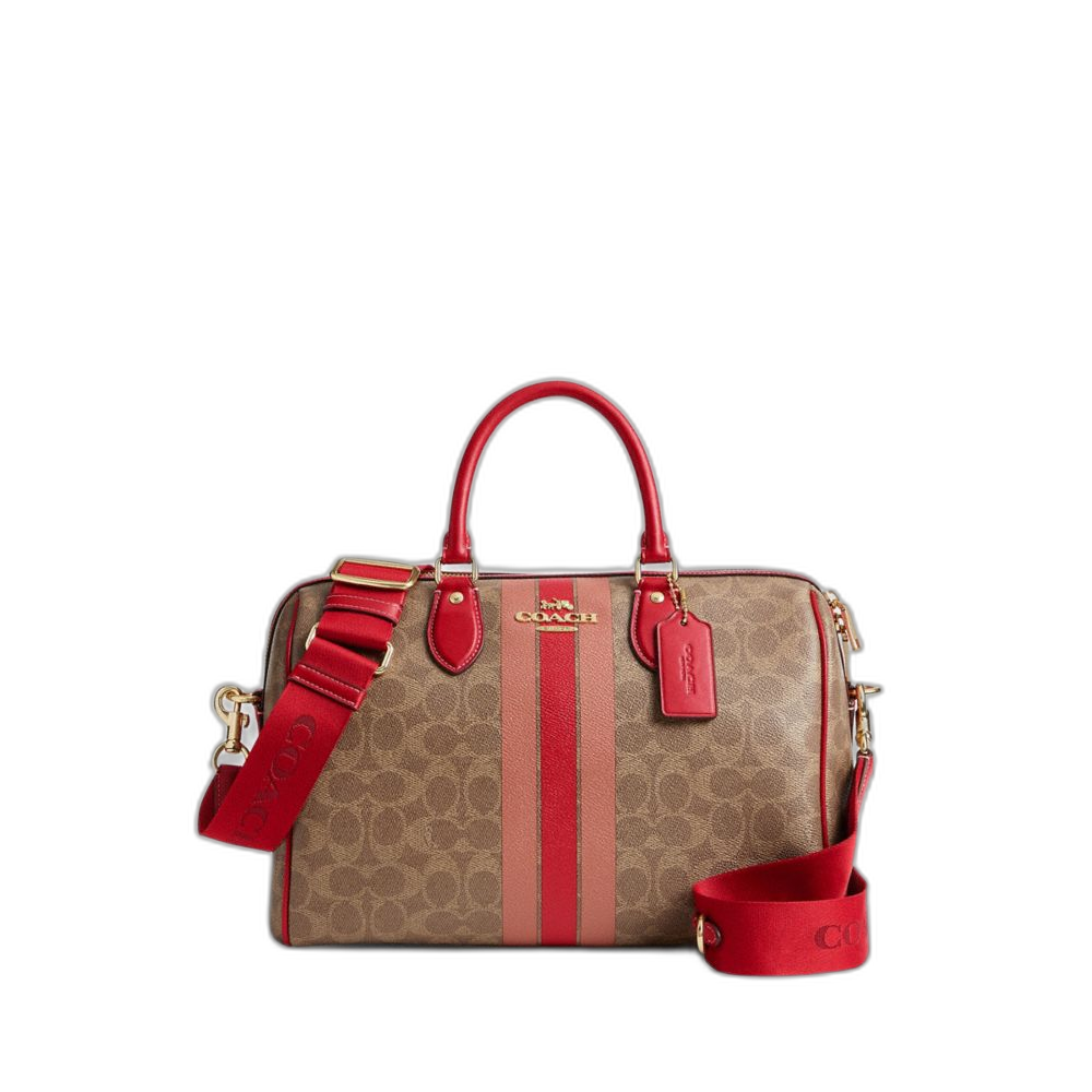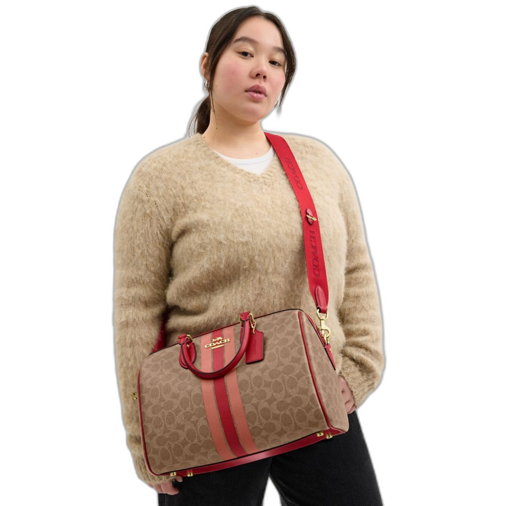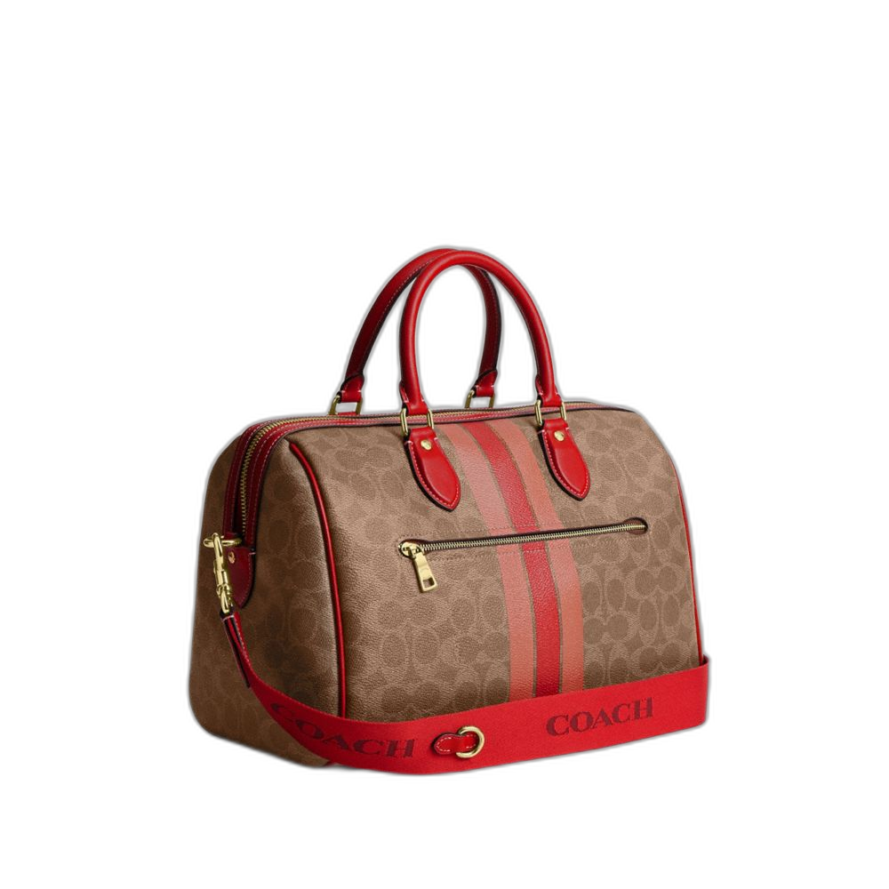 Coach Women's Rowan Large Satchel Bag In Signature Canvas With Stripe Gold/Tan Multi
