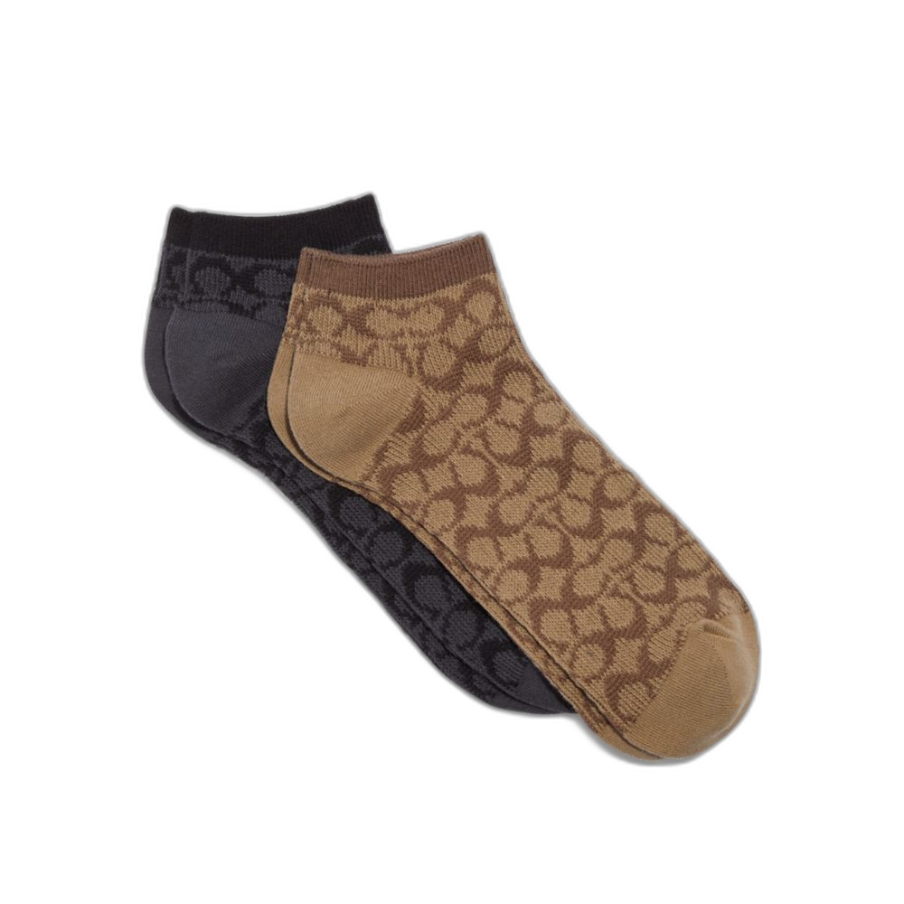 Coach Women's Signature Ankle Socks Khaki/Black