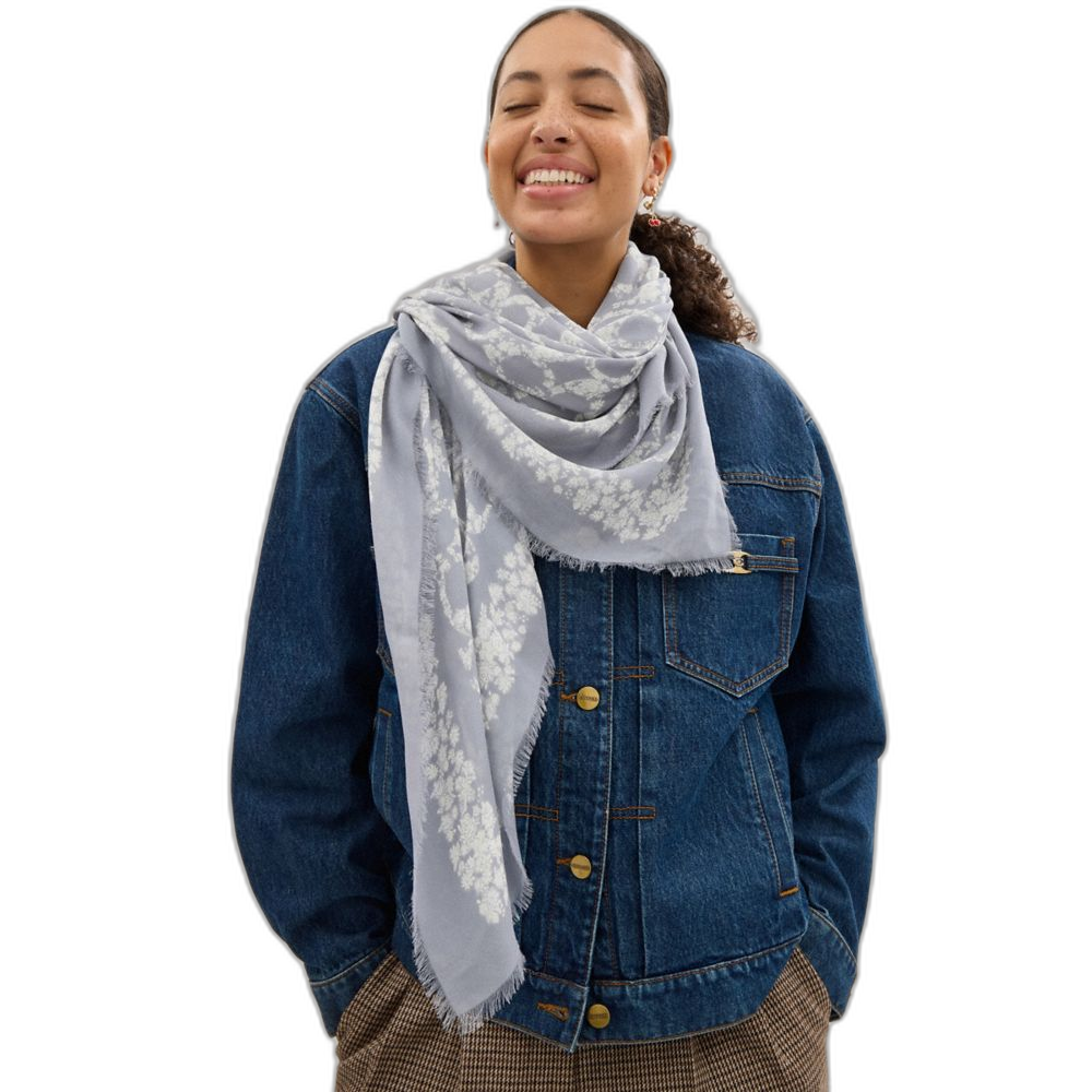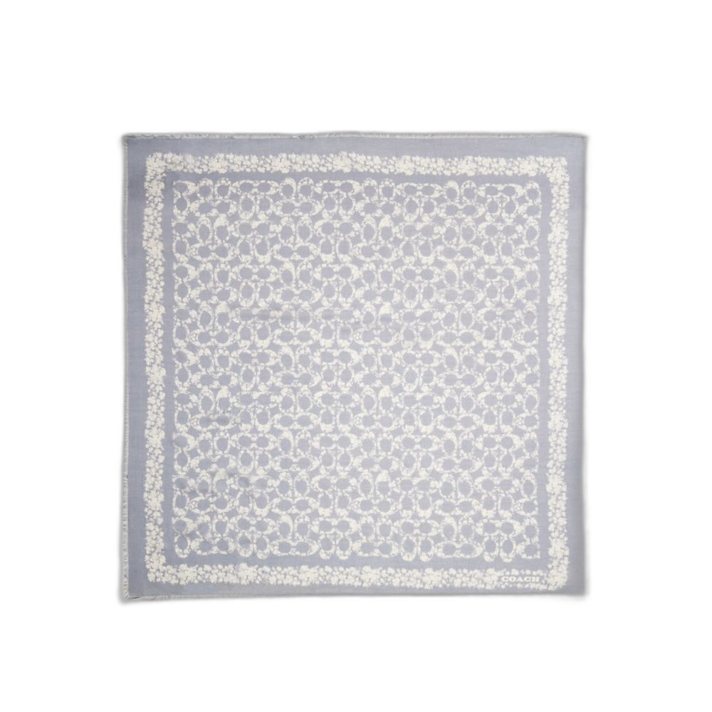 Coach Women's Signature Rose Meadow Print Oversized Square Scarf Grey Blue