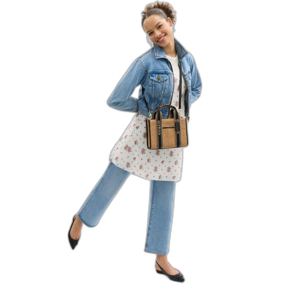 Straw and refined pebble leather Inside zip and multifunction pockets Handles with 3 3/4" drop Outside open pocket Detachable strap... Read more