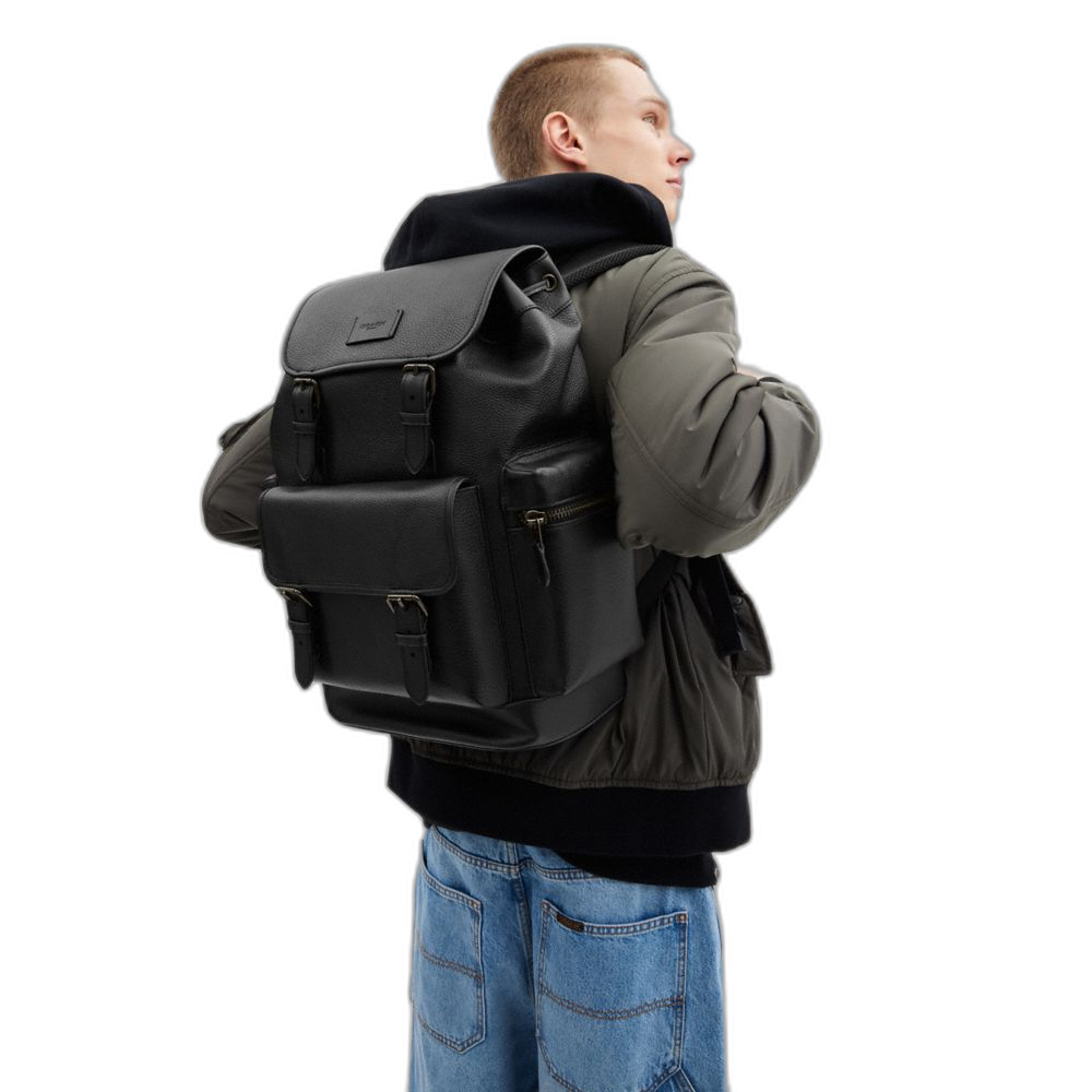 Refined pebble leather and smooth calf leather Inside zip, cell phone and multifunction pockets Inside tech sleeve Drawstring and snap... Read more