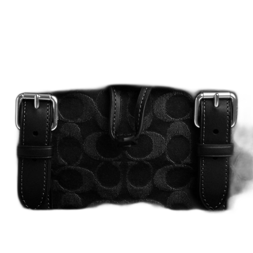 Signature denim and smooth calf leather Inside zip, cell phone and multifunction pockets Inside tech sleeve Drawstring and snap closures,... Read more