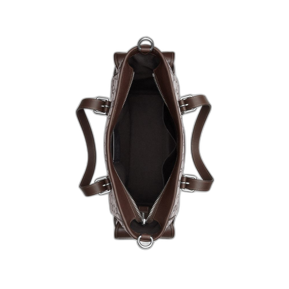 Signature jacquard, refined pebble leather and smooth calf leather Inside zip and multifunction pockets Zip-top closure, fabric lining Adjustable handles... Read more
