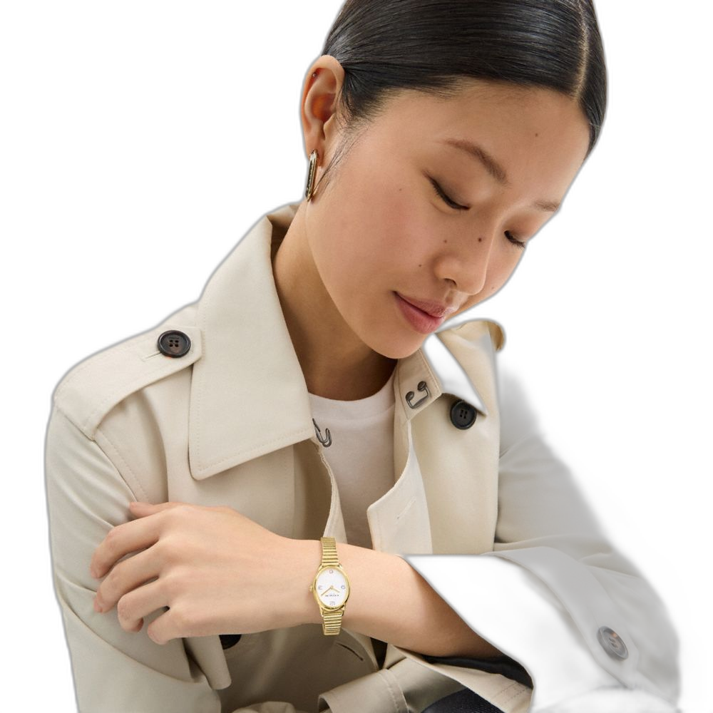 Gold tone case and stretch bracelet Approx. case diameter: 22mm Mineral crystal Quartz movement Slip-on Water-resistant to 99 feetStyle No.... Read more