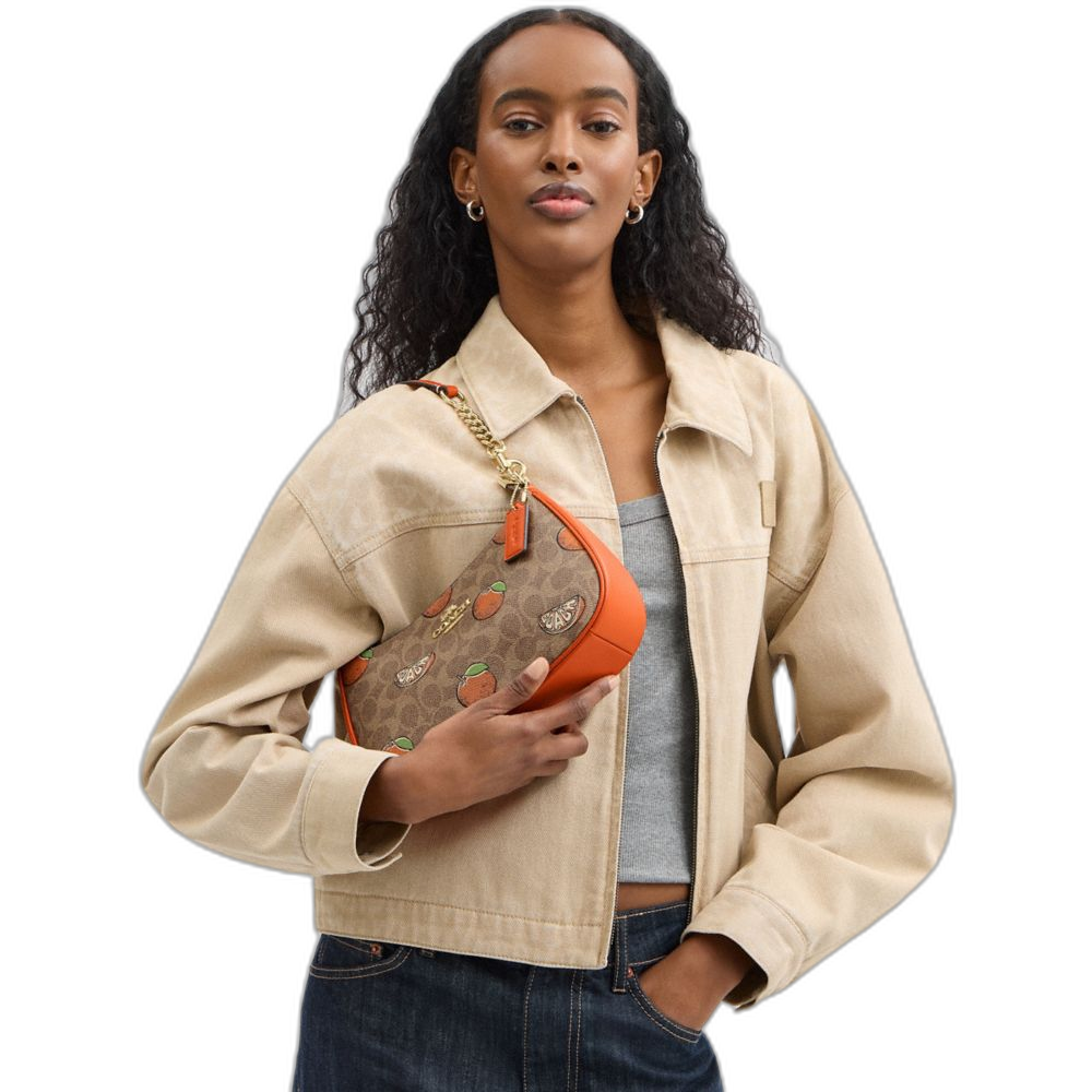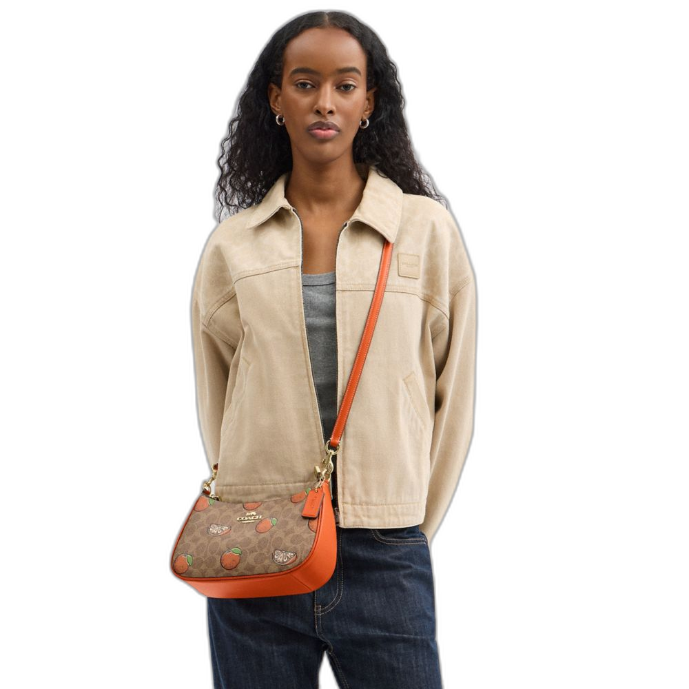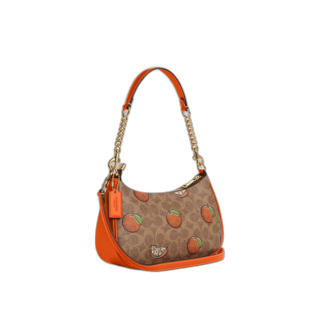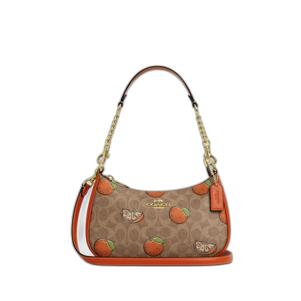 Coach Women's Teri Shoulder Bag In Signature Canvas With Orange Print Gold/Tan Multi
