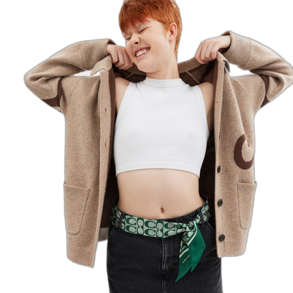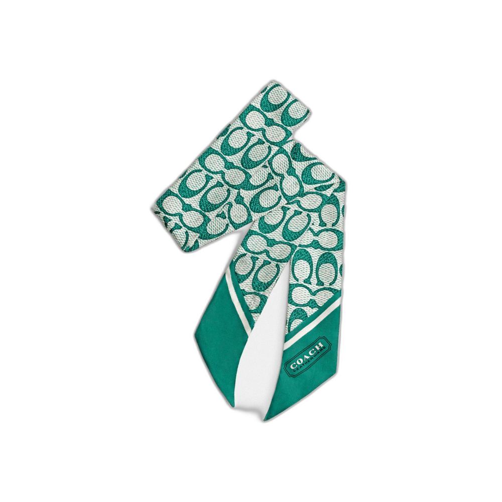 Coach Women's Textured Signature Print Silk Skinny Scarf Ivy