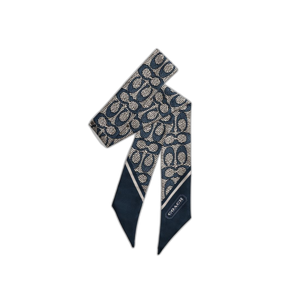 Coach Women's Textured Signature Print Silk Skinny Scarf Midnight Navy