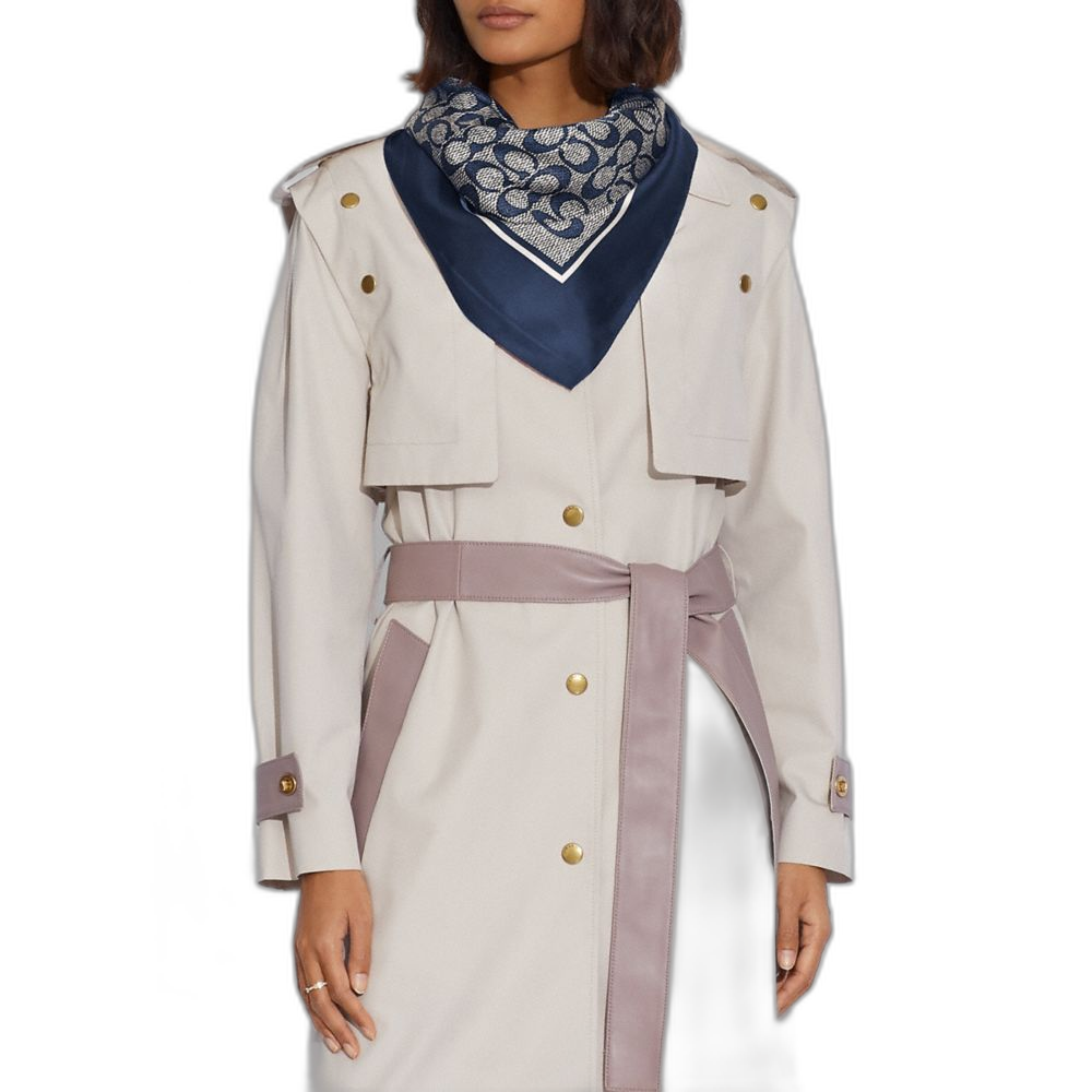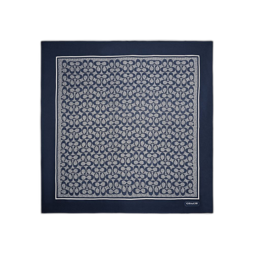 Coach Women's Textured Signature Print Silk Square Scarf Midnight Navy