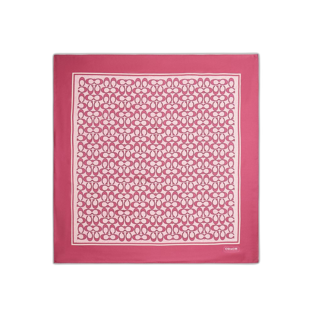 Coach Women's Textured Signature Print Silk Square Scarf Pink