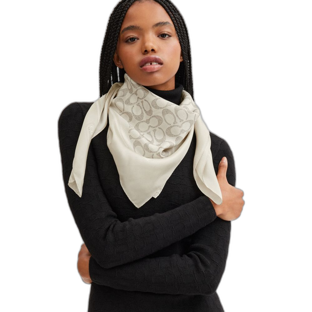 Coach Women's Textured Signature Print Silk Square Scarf Steam