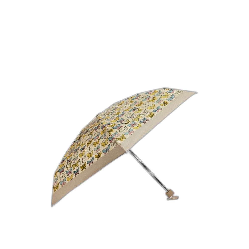 Coach Women's Uv Protection Mini Umbrella In Butterfly Print Silver/Biscotti Multi