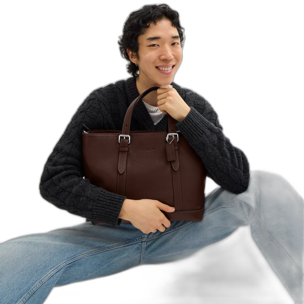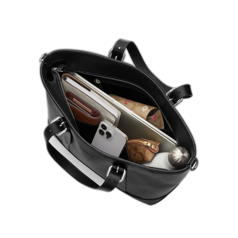 Refined pebble leather Inside zip and multifunction pockets Zip-top closure, fabric lining Adjustable handles with 6" drop Detachable webbing strap... Read more
