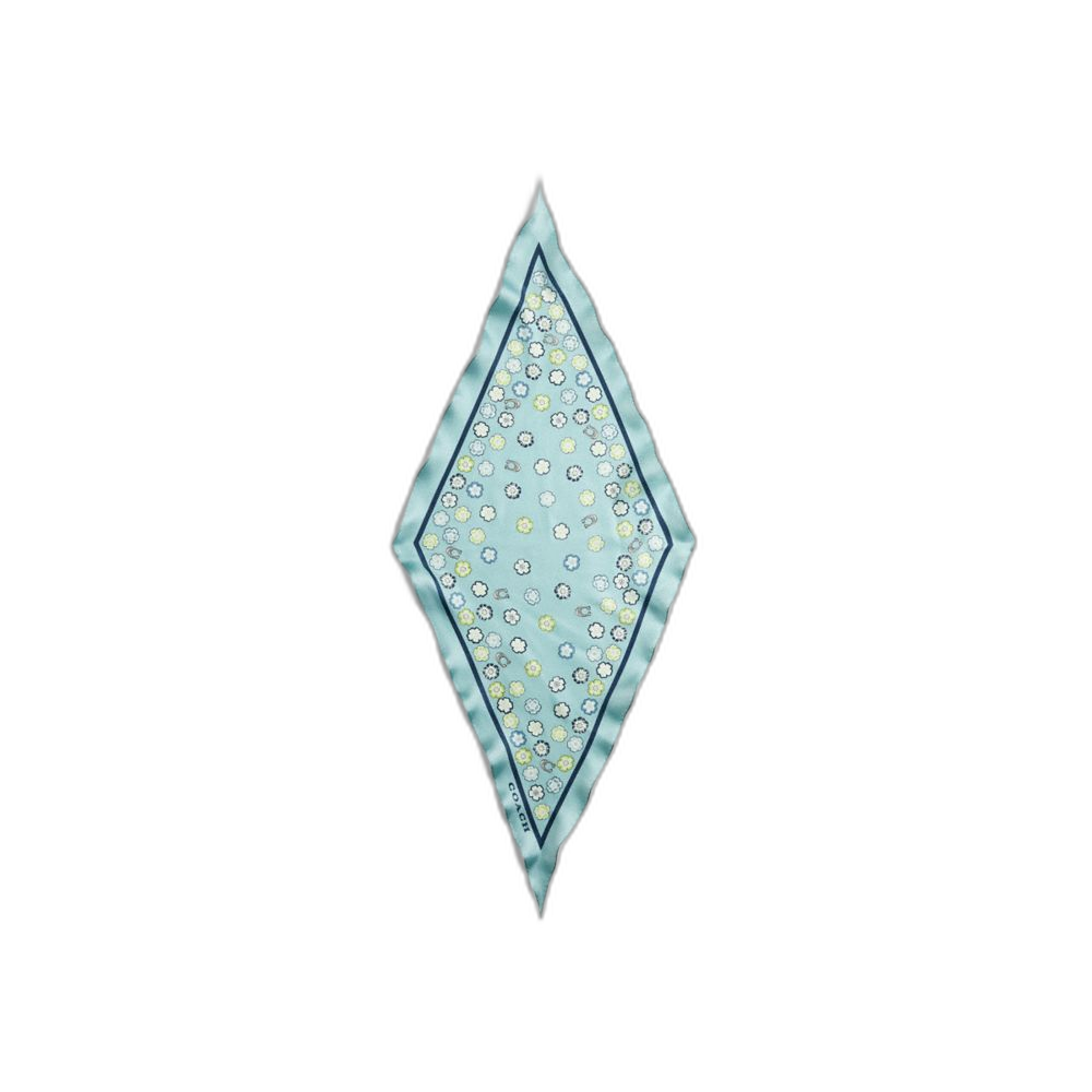 Coach Women's Waterfall Tea Rose Print Silk Diamond Scarf Light Blue