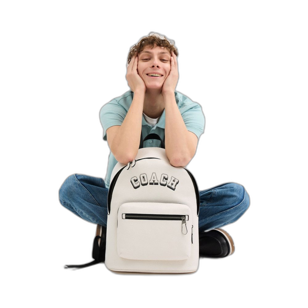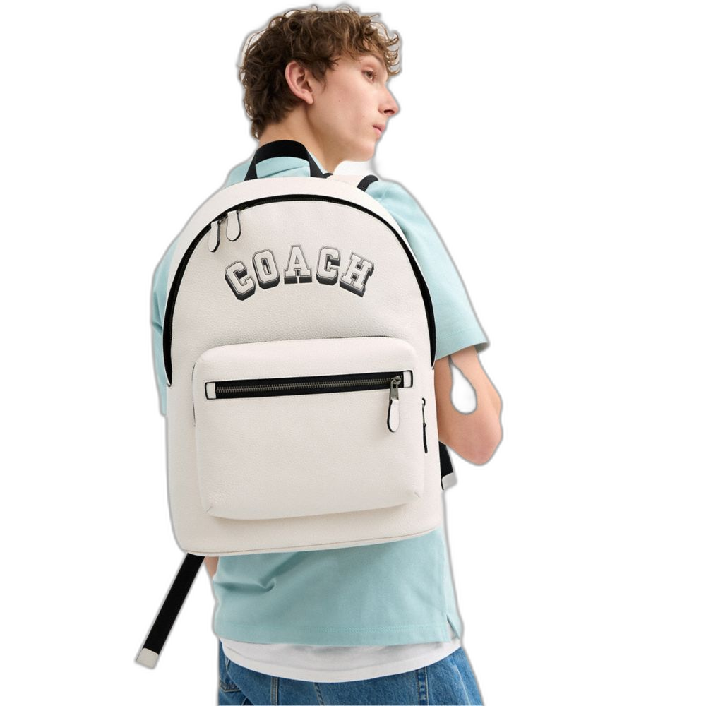 Coach Women's West Backpack With Varsity Motif Gunmetal/Chalk/Black